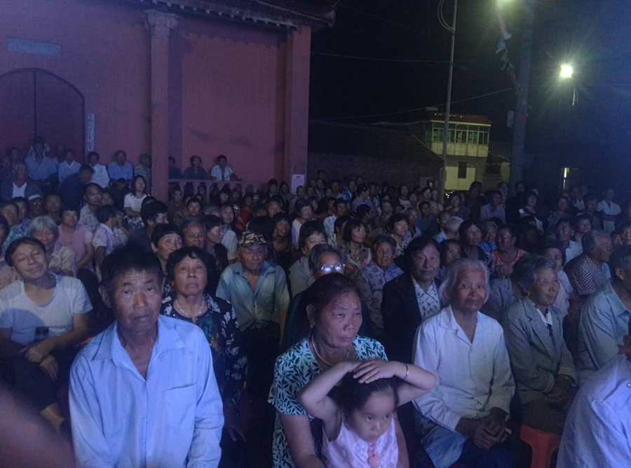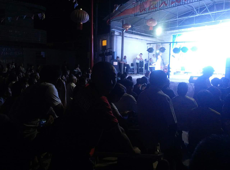 7点整,在村民们的鞭炮声中节目开始,表演在如同过年的氛围中开始了。观众们的热情调动了演员们的热情,台上歌、舞、小品、萨克斯等节目一个接着一个。台下观众不时地产生着互动,尤其小品《相亲相爱一家人》让台下观众产生了共鸣,尊老爱老是中华传统美德,观众随着节目的进展,时而欢快的笑,时而流泪,真正起到了寓教于乐的作用。