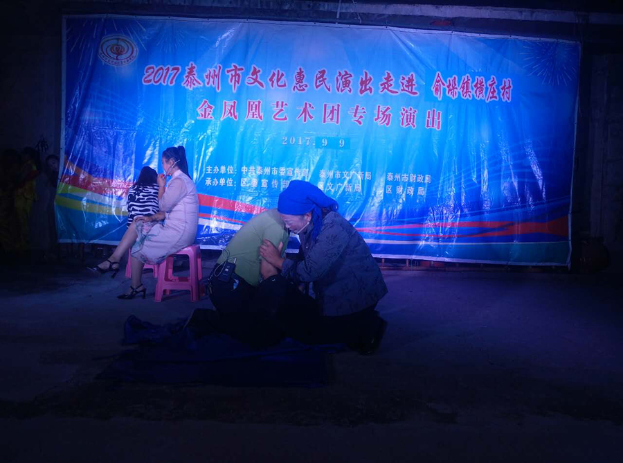 2017年9月9日晚,医药高新区金凤凰艺术团走进姜堰区俞垛镇横庄村,当天下午布置舞台时,天空还飘着小雨,布置舞台时就有观众围观,6点不到就陆续有观众进入现场,等待演出开始!
