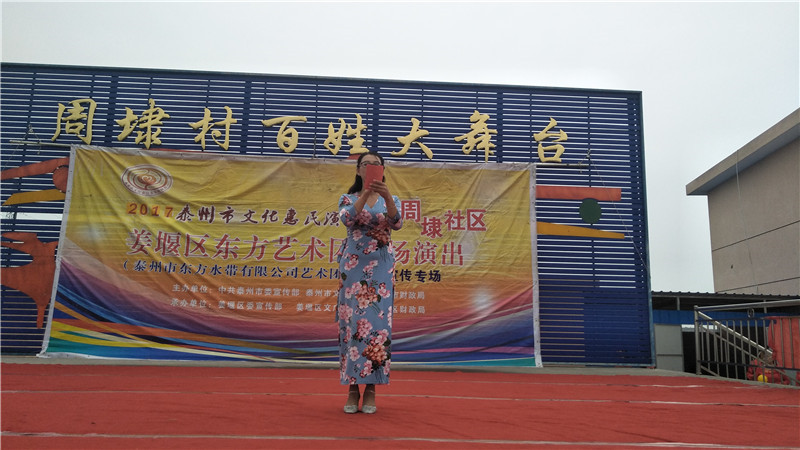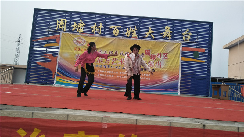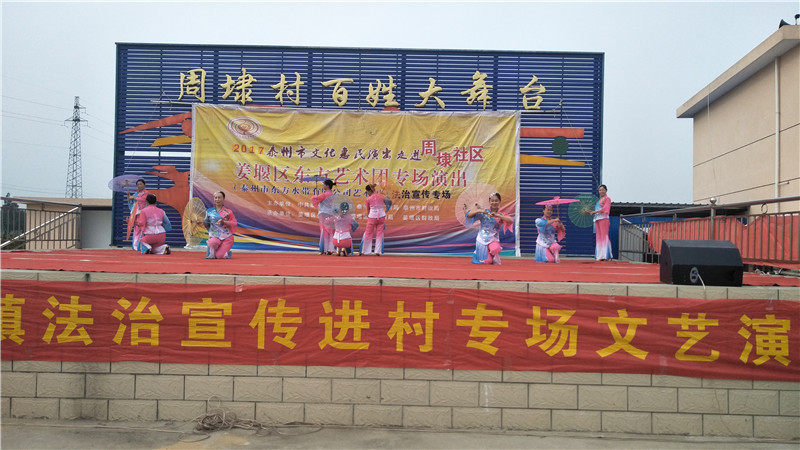 9月10日下午,姜堰区东方艺术团应邀走进周埭村,为村民朋友们带去了一场丰富的文化大餐。节目形式多样:小品、相声、舞蹈、独唱、二人转……受到广大群众的热烈欢迎。