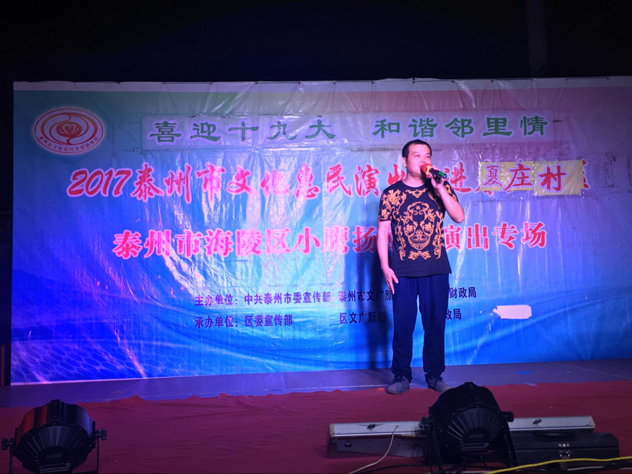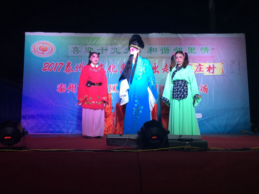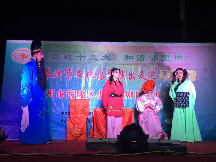2017泰州市文化惠民演出走进海陵区罡杨镇夏庄村,海陵区小鹰扬剧团专场演出,2017年8月27日晚上在海陵区罡杨镇夏庄村117公交站台停车场成功举办。本场演出演出剧目为大型传统扬剧《分裙记》整本戏,演出时长160分钟,演员们精彩的表演博得了观众的阵阵掌声。演出很成功!感谢村领导提供全方位的服务!