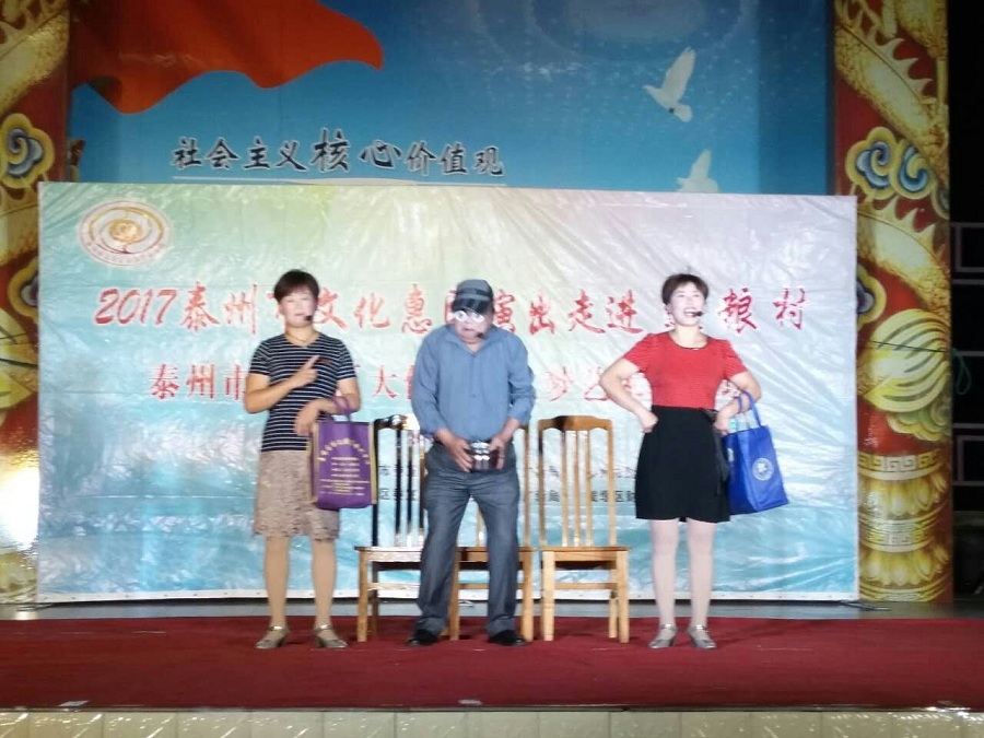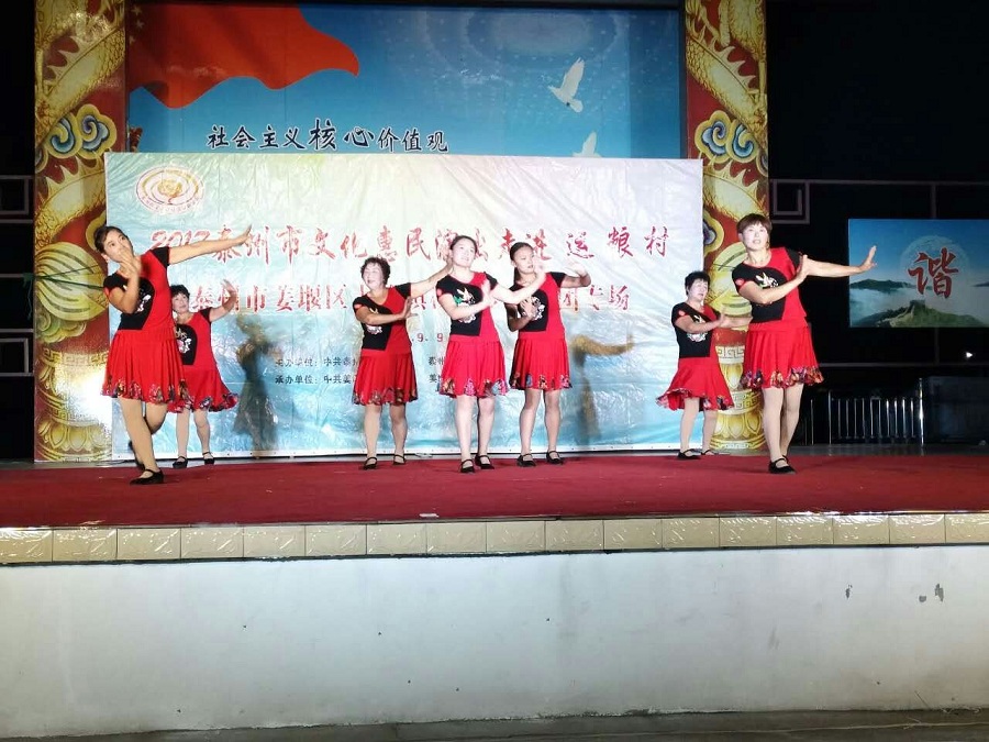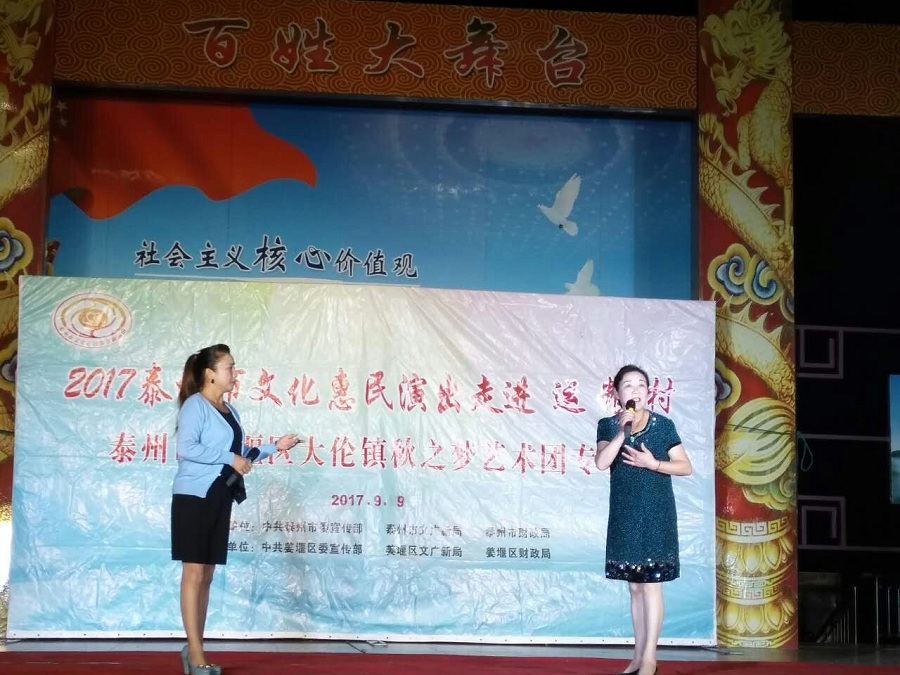 秋风送爽,明月亲情,在举国上下喜迎十九大胜利召开之际,姜堰区大伦镇秋之梦艺术团惠民演出来到环境优美的运粮村,运粮村是文明村,曾获得江苏省和谐社区,光荣称号,9月9日晚7点,艺术团精心编制了一台形式多样内容丰富的文艺节目,惠民晚会围绕宣传社会主义核心价值观的活动主题,倡导文明,崇德向善,尊老爱幼,团结友善,一个个节目精彩丰富,现场气氛非常热烈,笑声,掌声,欢呼省不断,近2小时的演出,现场600多名观众没有一个间中离场的,演出结束后,村领导及观众一致反映,演出弘扬了正能量,接地气,符合老百姓的口味,是一种真正的文化享受。
