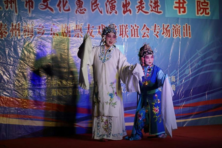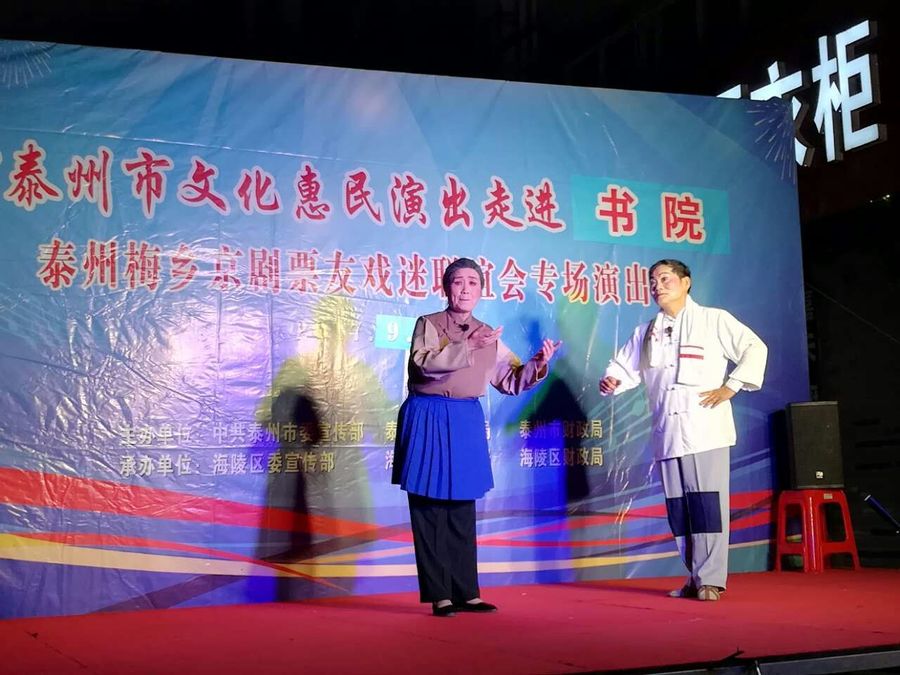 9月13日晚上,梅乡京剧票友联谊会在城中街道书院社区开展惠民演出活动,为居民们送上了一台高质量的京剧艺术大餐,让戏迷们过足了戏瘾。此次演出,有传统京剧《白蛇传》、《贵妃醉酒》、《状元媒》、《文昭关》、《钓金龟》、《锁麟囊》、《洪羊洞》等经典曲目,有现代京剧《沙家浜》、《白毛女》、《智取威虎山》、《红灯记》等优美唱段,演员们通过彩唱、对唱、折子戏表演等形式轮番上场,居民们在台下不时报以热烈的掌声和喝彩声,整场演出受到了广大居民的充分肯定和由衷赞誉。