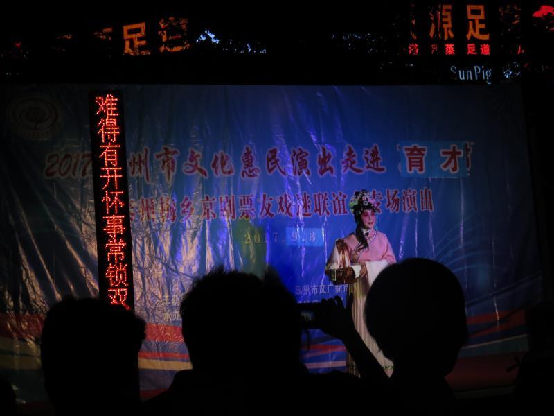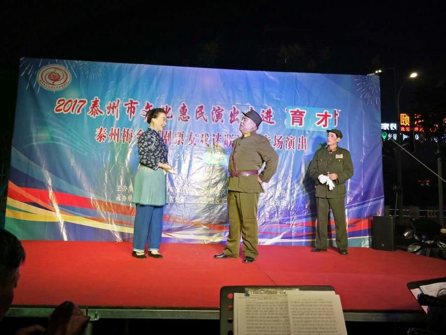 为了纪念这一特殊的日子,梅乡京剧票友联谊会当天晚上赴城东街道育才社区,为居民观众献上了《红灯记》、《白毛女》、《江姐》、《沙家浜》等现代京剧,与广大居民们一起重温中国人民在党的领导下不畏艰辛、不怕牺牲、抗日救国的峥嵘岁月。