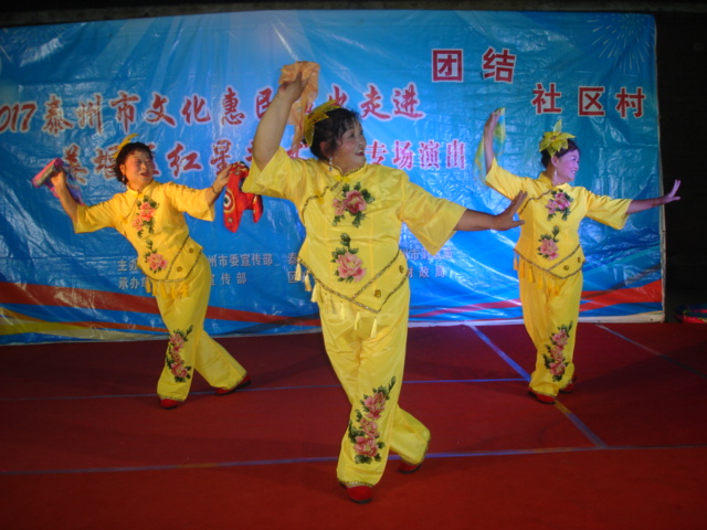 红星艺术团来到娄庄团结村惠民演出,受到娄庄领导的热情接待,团结村的村民们欢天喜地的来到场地,7点钟不到场地上坐满了观众,在欢乐的音乐声中演员们登台表演,演出了精彩的节目。赢得了观众们的喝彩声。