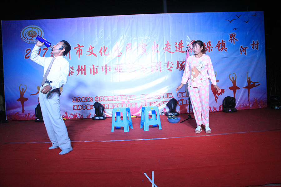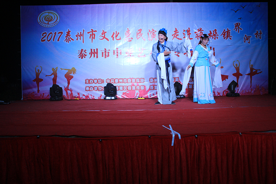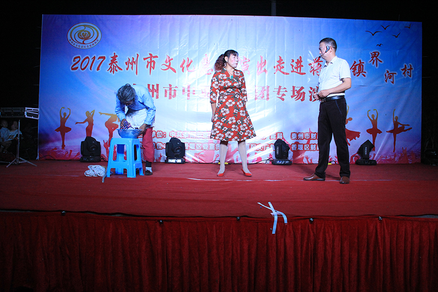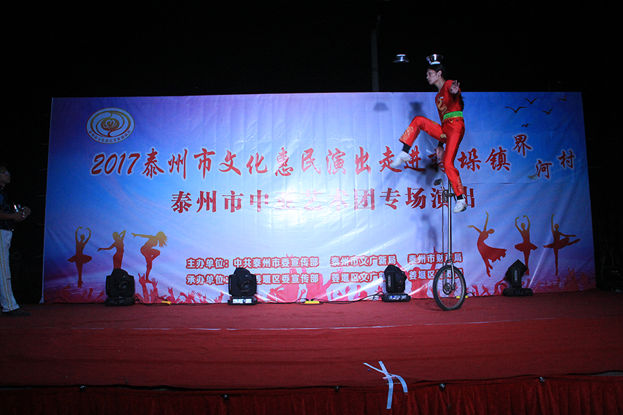 应姜堰区蒋垛镇界河村邀请,泰州中亚艺术团9月18日晚进行专场惠民演出,由于村里宣传到位,七点不到广场上就坐满了观众,中亚艺术团精心编排了以弘扬社会主义核心价值观,“三大主题”美德善行为主题的多种形式,内容丰富多彩的十多个节目。小品、戏剧、歌伴舞、舞蹈、魔术、杂技一个个节目精彩纷呈,赢得观众一次次热烈的掌声,完美的演出给观众带来了美好的视觉、听觉盛宴。也给人民留下了深刻的印象。村领导以及老百姓看了这次演出都拍手称赞。