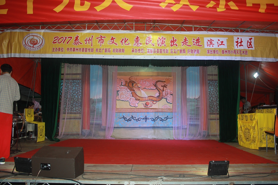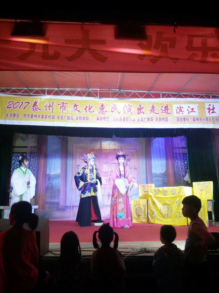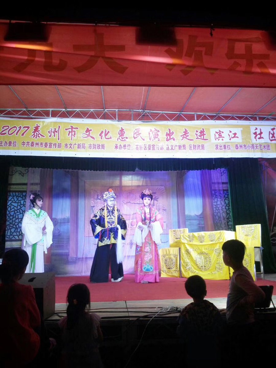 城南街道滨江社区,为基层社区居民带来了一场经典传统扬剧全本戏《狸猫换太子》。为了保证社区群众的欣赏效果,艺术团动用了戏曲演出专用舞台,下午5点,社区主要领导和小雨天艺术团就来到演出现场,为晚上的演出做好了充分准备。节目晚上正点准时开演,现场200多的社区观众看的是兴致勃勃,高潮之时的广场更是掌声雷动,很多观众都说,看到这样的正规化演出,才是感觉到了真正的文化惠民。因现场社区观众的盛情,正本演出后还添续了折子戏段加唱,整场演出持续了近3小时之多...
