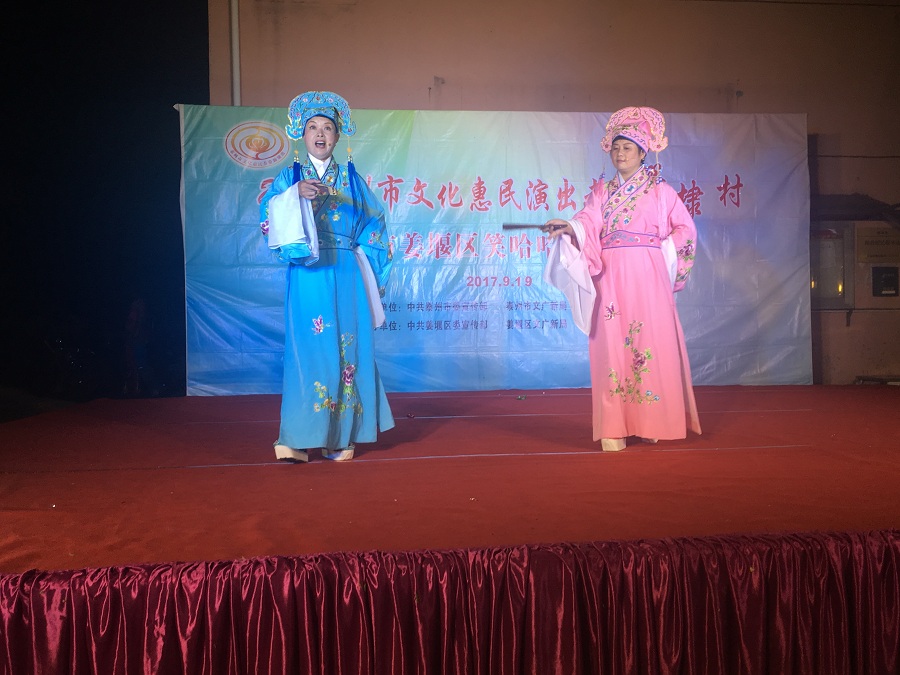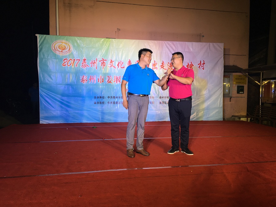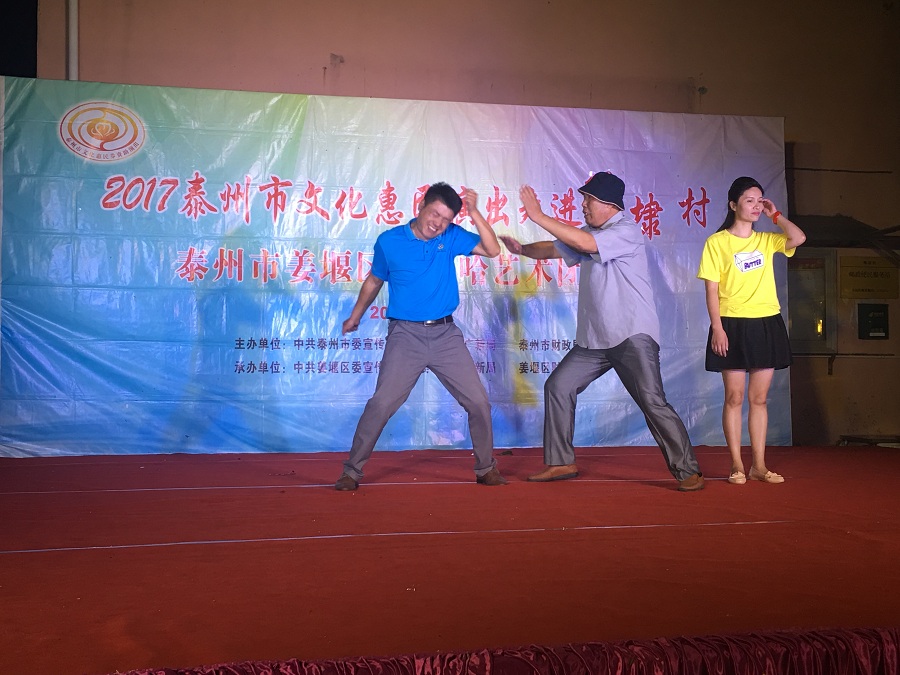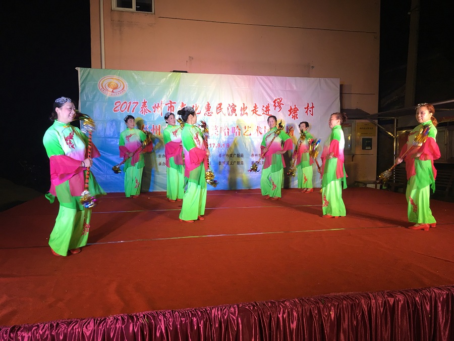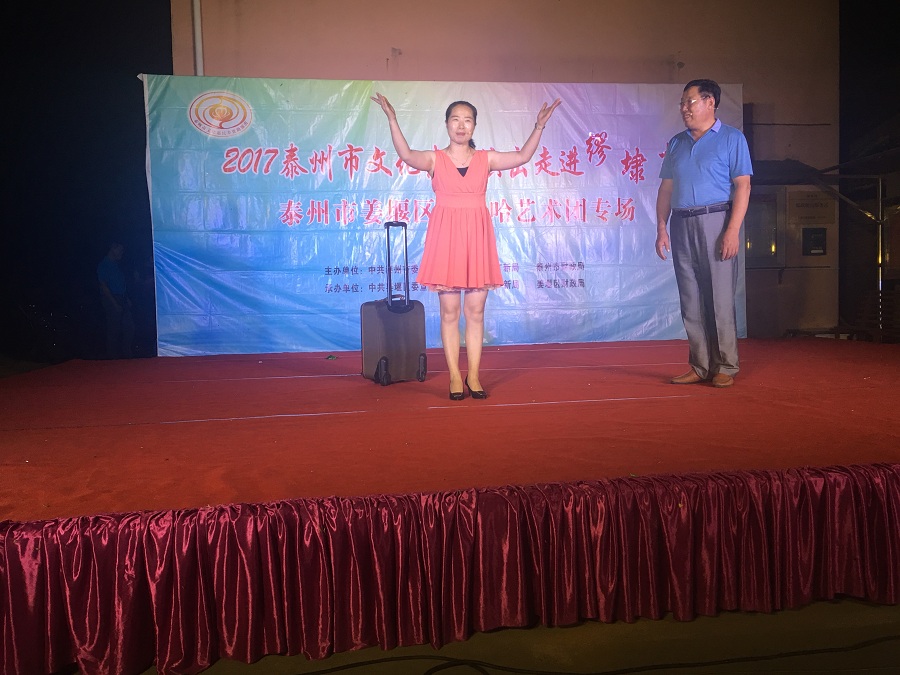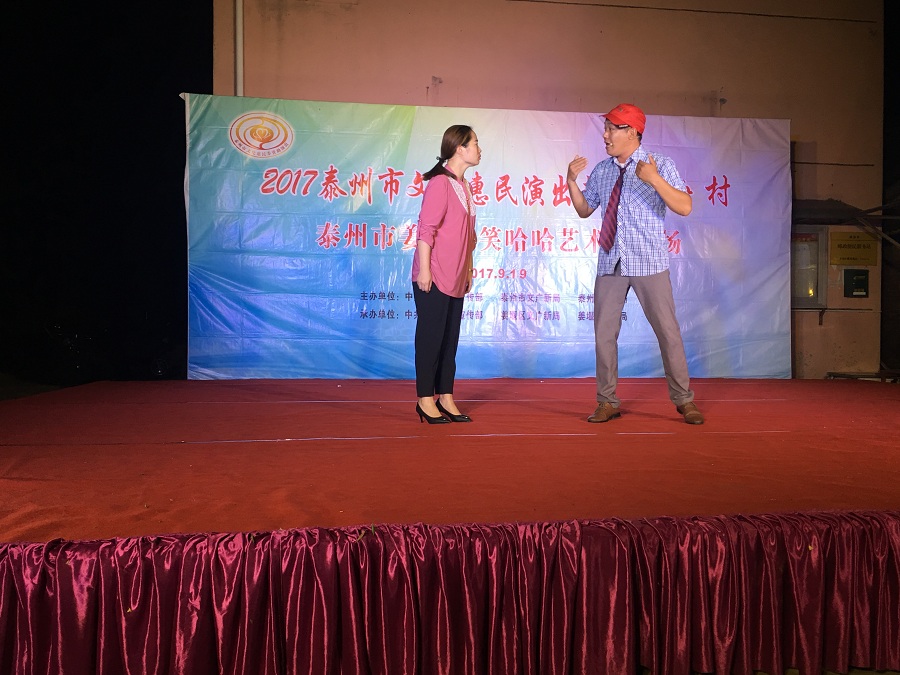 9月19日,姜堰区笑哈哈艺术团文化惠民专场演出走进大伦镇缪埭村。晚上7点演出在缪埭村村部村广场准时开始,现场表演的节目有舞蹈《红红火火大中华》、莲花落说唱《莲花一打笑哈哈》、方言韵白《路在脚下》《回乡》《老娘舅》萨克斯演奏《北国之春》、表演《回娘家》、天津快板《有话好好说》、相声《趣说泰州话》、表演唱《财政惠民乐农家》、以及独唱等11种形式、12个节目。整台演出时长115分钟,观众约500人左右。节目形式多样、内容丰富,尤其相声、快板、喜剧小品、方言韵白等语言类特色节目赢得了观众的阵阵笑声和掌声,受到村干部、群众的一致好评。