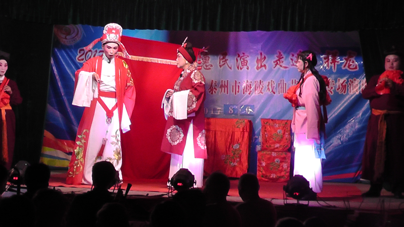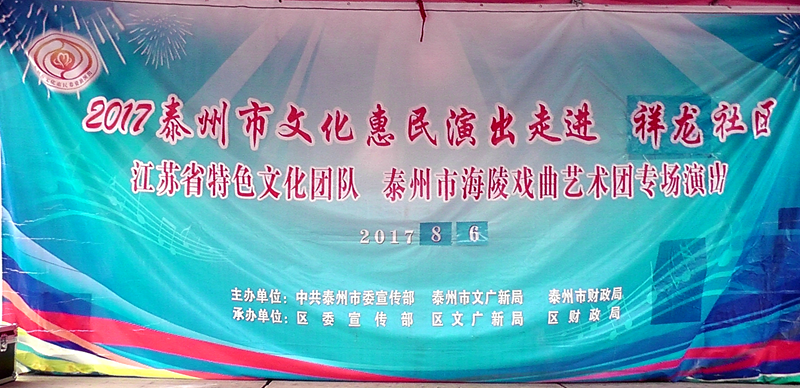 泰州市海陵戏曲艺术团于2017年8月6日晚7点30分在医药高新区明珠街道祥龙社区文化广场演出大型优秀传统扬剧——《逃婚的新娘》。我团参演人员25人,由于祥龙社区积极宣传,前来看戏的群众近200人,人民需要文化,文化需要人民,演出现场气氛热烈,观众掌声不断,演出取得圆满成功,这更加激起我们为老百姓排好戏、演好戏、唱好戏的决心。