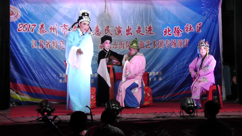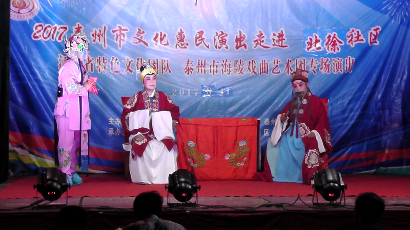 泰州市海陵戏曲艺术团于2017年8月11日晚7点30分在医药高新区明珠街道北徐社区文化广场演出大型优秀传统扬剧——《真假新郎》。我团参演人员25人,由于北徐社区积极宣传,前来看戏的群众近250人,人民需要文化,文化需要人民,演出现场气氛热烈,观众掌声不断,演出取得圆满成功,这更加激起我们为老百姓排好戏、演好戏、唱好戏的决心。