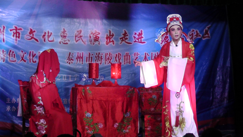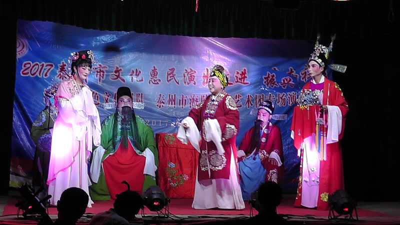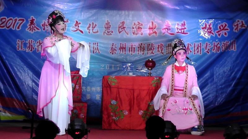 泰州市海陵戏曲艺术团于2017年8月19日晚7点30分在医药高新区凤凰街道振兴社区文化广场演出大型优秀传统扬剧——《碧玉簪》。我团参演人员25人,由于振兴社区积极宣传,前来看戏的群众近250人,人民需要文化,文化需要人民,演出现场气氛热烈,观众掌声不断,演出取得圆满成功,这更加激起我们为老百姓排好戏、演好戏、唱好戏的决心。