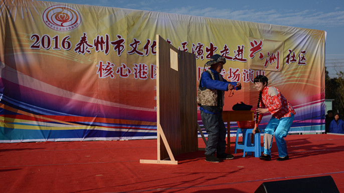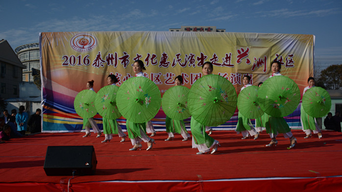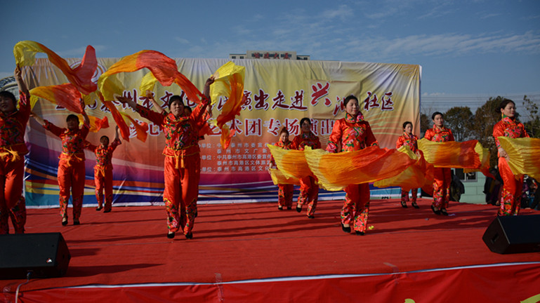 2月10日下午14:00,泰州市文化惠民走进兴洲社区,核心港区艺术团专场文艺演出活动在永安洲江鲜美食广场拉开序幕,整场安排了14个文艺节目,演出时长1小时45分,节目类型包括舞蹈、独唱、小品、器乐、情景剧等,现场观众约3000人,演出效果较好,得到了广大群众的一致好评。