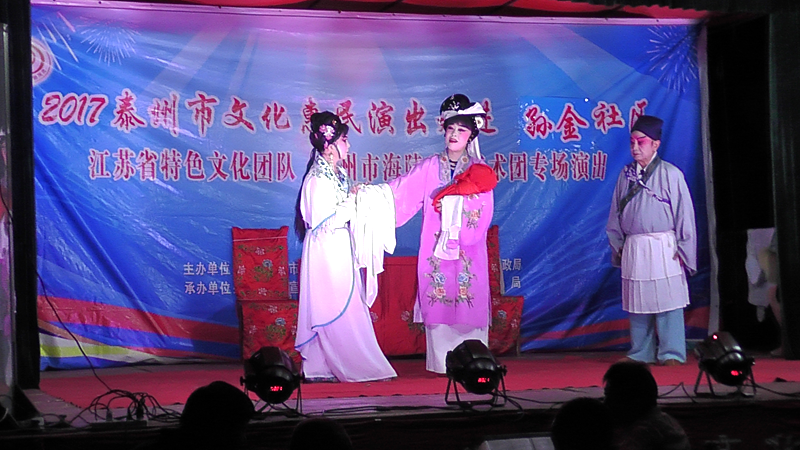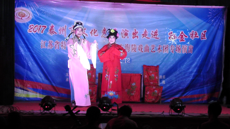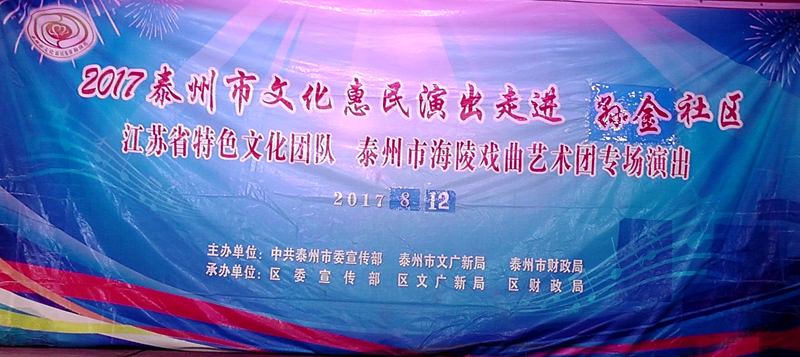 泰州市海陵戏曲艺术团于2017年8月12日晚7点30分在海陵区城东街道孙金社区文化广场演出大型优秀传统扬剧——《逃婚的新娘》。我团参演人员25人,由于孙金社区积极宣传,前来看戏的群众近350人,人民需要文化,文化需要人民,演出现场气氛热烈,观众掌声不断,演出圆满成功。这更加激起我们为老百姓排好戏、演好戏、唱好戏。把泰州市文化惠民演出活动锦上添花,更上一层楼。