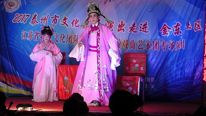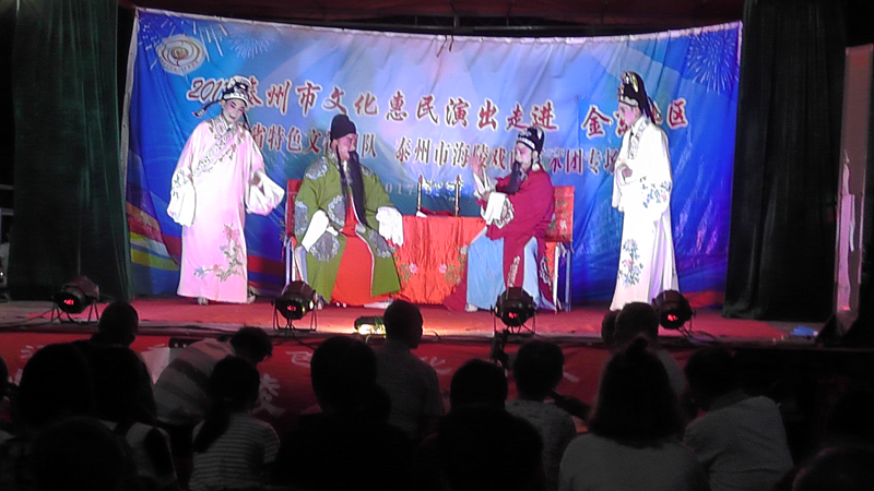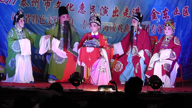 泰州市海陵戏曲艺术团于2017年9月8日晚7点30分在海陵区京泰路街道金东社区文化广场演出大型优秀传统扬剧——《碧玉簪》。我团参演人员25人,由于金东社区积极宣传,前来看戏的群众近300人,人民需要文化,文化需要人民,演出现场气氛热烈,观众掌声不断,演出圆满成功。这更加激起我们为老百姓排好戏、演好戏、唱好戏。把泰州市文化惠民演出活动锦上添花,更上一层楼。