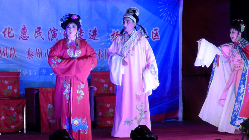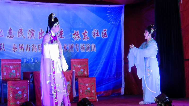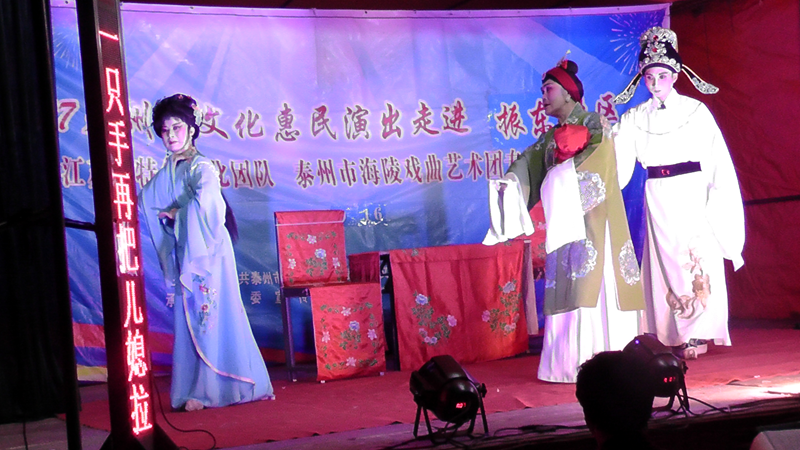 泰州市海陵戏曲艺术团于2017年9月16日晚7点30分在海陵区九龙街道振东社区文化广场演出大型优秀传统扬剧——《逃婚的新娘》。我团参演人员25人,由于振东社区积极宣传,前来看戏的群众近400人,人民需要文化,文化需要人民,演出现场气氛热烈,观众掌声不断,演出圆满成功。这更加激起我们为老百姓排好戏、演好戏、唱好戏。把泰州市文化惠民演出活动锦上添花,更上一层楼。