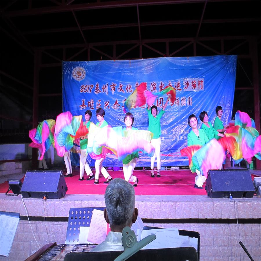 9月28日晚,姜堰区兴泰草根文化艺术团为沙垛村村民举行文化惠民专场演出。艺术团带来了歌舞、小品、戏剧、说唱、快板等多种形式的文艺节目,热情的观众对艺术团的演出不时报以热烈的掌声,送来的茶水更是激发了演员们的激情。整场演出100分钟,台下300多观众给予了极高的评价。