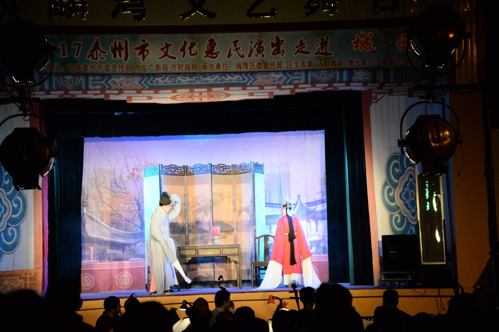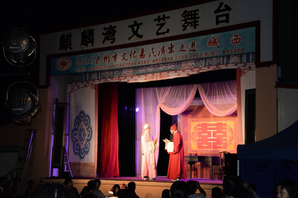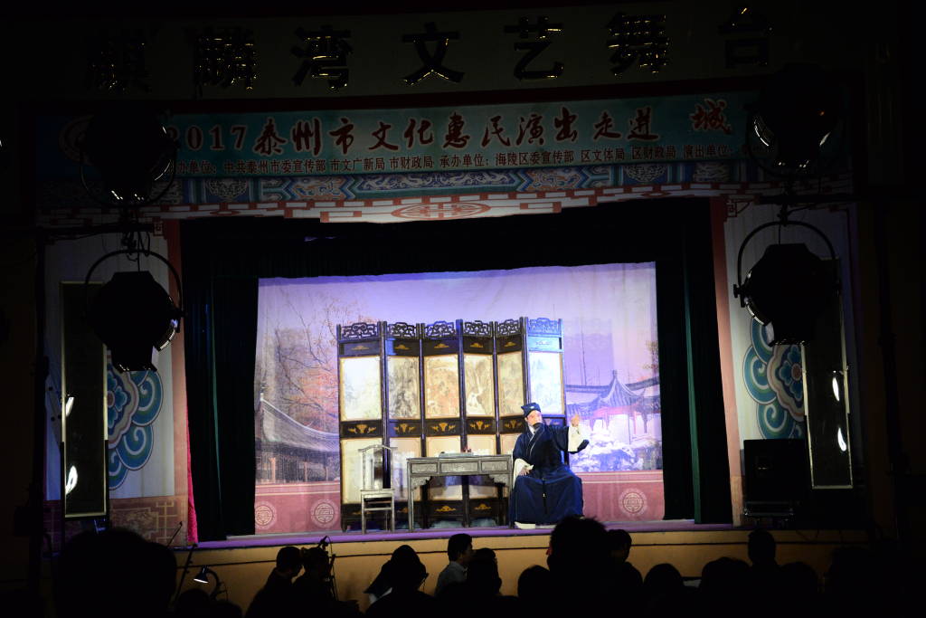 9月24日晚7:30分应海陵区城西街道办事处的邀请,泰州市淮剧团文化惠民演出活动走进了城西街道麒麟社区文艺大舞台,为社区居民带来了一台优秀传统淮剧《阎惜姣》。此剧是根据京剧大师周信芳先生的代表作《乌龙院》移植改编,环环相扣的剧情始终紧扣着观众的神情,舞台上演员精湛专业的表演在两个半小时的演出中赢得了观众数十次的掌声,居民陈先生说:“专业剧团的演出就是精彩,很正规,我经常跟随你们剧团演出路线后面看戏,欢迎你们常来我们基层演出。”一句句朴实的语言深深地鞭策着我们前行,今后一定继续创作人民喜爱接地气的优秀作品奉献给广大观众。