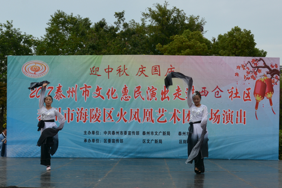 火凤凰艺术团文化惠民演出走进海陵区城西街道西仓社区。
