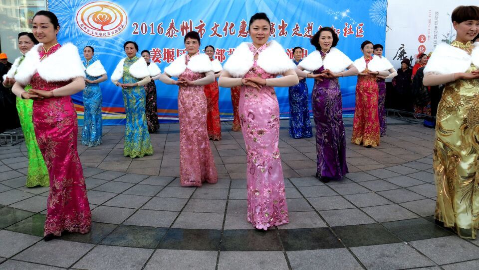 2016年2月16日,正月初九,第三场南街社区开演!南街社区位于姜堰坝口,这里是姜堰草根文化集结地,平日里很是热闹。锡剧,扬剧,淮剧,歌曲,你方唱罢我登场,水平高低不一。今日都聚拢来观看演出,其中也有心里不服的。不曾想一曲原汁原味的扬剧先得到掌声,接下来的锡剧《沙家浜》选段,京剧花脸《智取威虎山》中李勇奇的一段唱彻底让各位心服口服。唱的是热火朝天,旗袍秀又让人看着心疼,团员们旗袍里面穿了一件薄薄的打底衫,她们刚从更衣室出来,一位老太太就连忙拉住她们的手,用自己瘦弱的身子裹着她们,恨不得把每个团员拥在自己怀里,嘴里不住地说:“太冷了,穿这么点衣服,感冒了怎么得了!”为他人送去开心,自己也得到别人的关心,看到那绽放的笑容,听到那阵阵掌声,即使冷点,也舒心,顿觉不虚此行!
