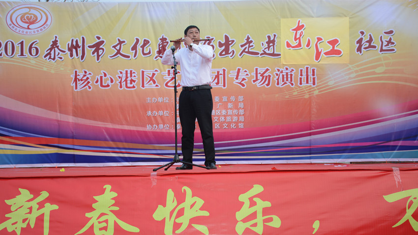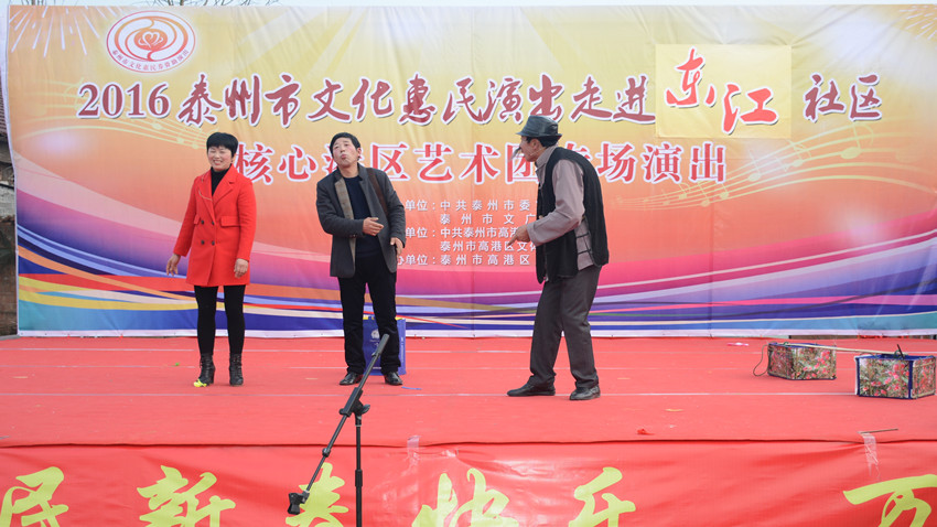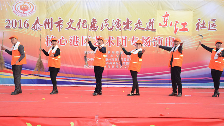 东江社区群众文化广场,400多名观众观看了核心港区艺术团演员的精彩表演,舞蹈、红歌联唱、器乐联奏、小品、表演唱精彩纷呈,观众掌声不断,一曲结束舞蹈《欢聚一堂》后,观众意犹未尽,整场节目在一片叫好声中落下帷幕。