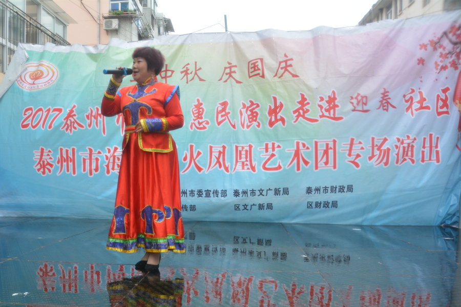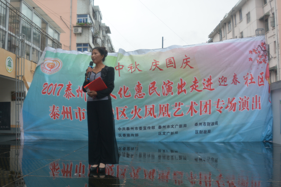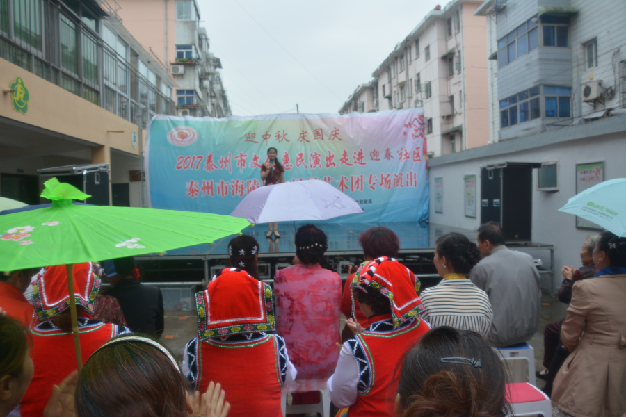 2017年9月30日,火凤凰艺术团文化惠民演出走进海陵区城东街道迎春社区.