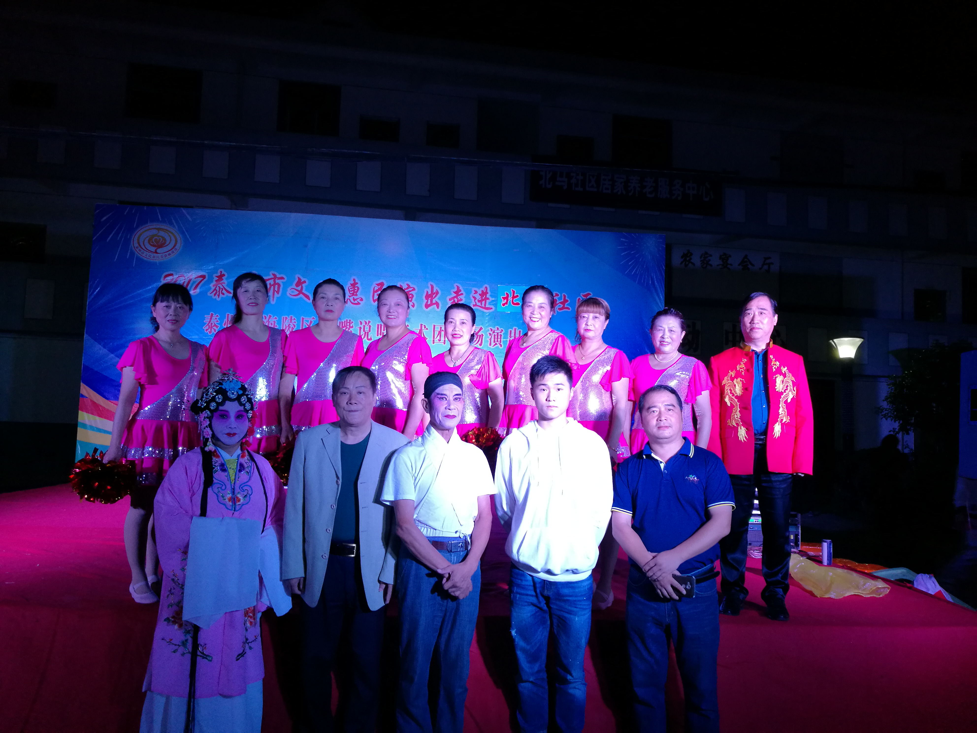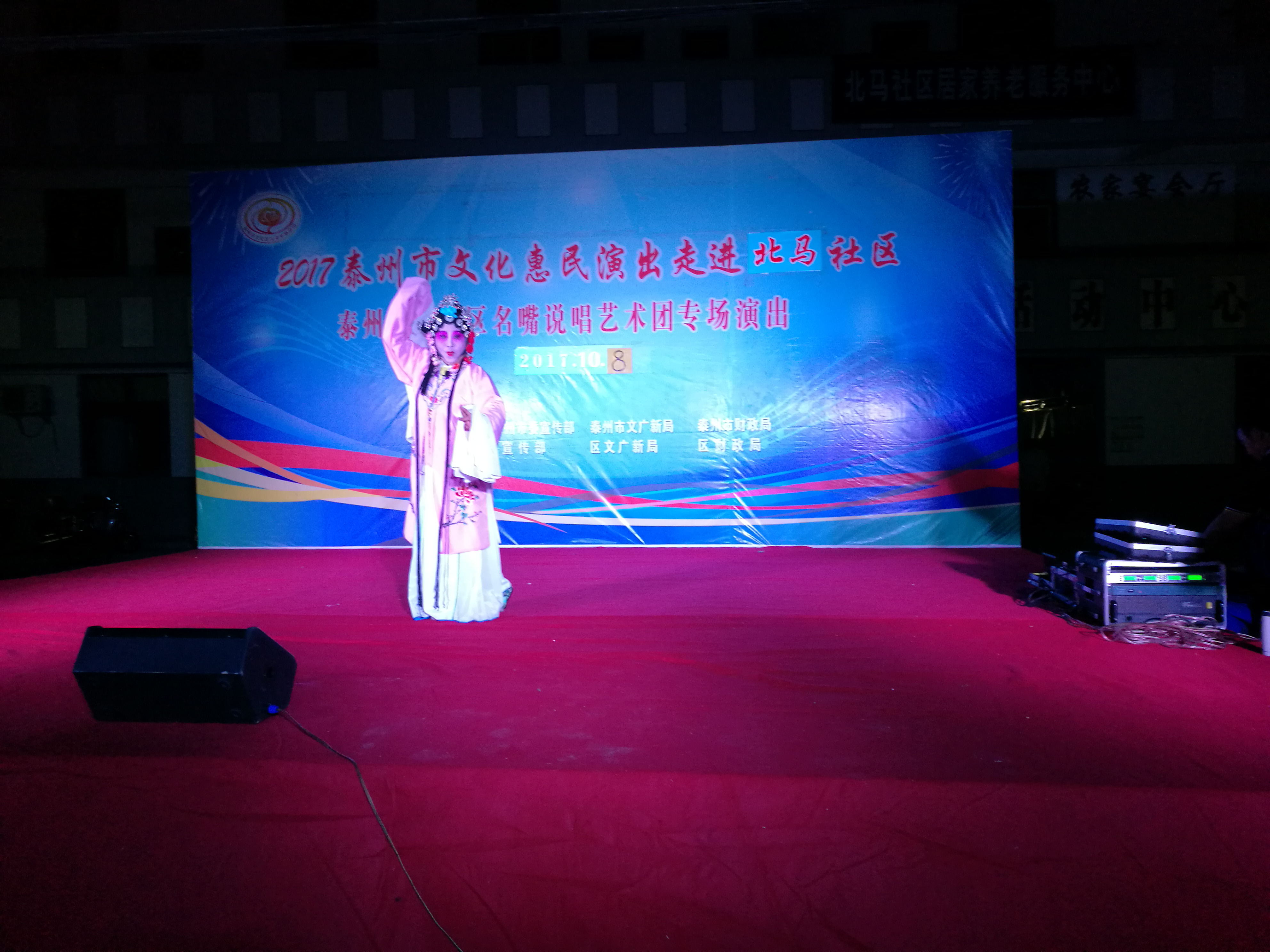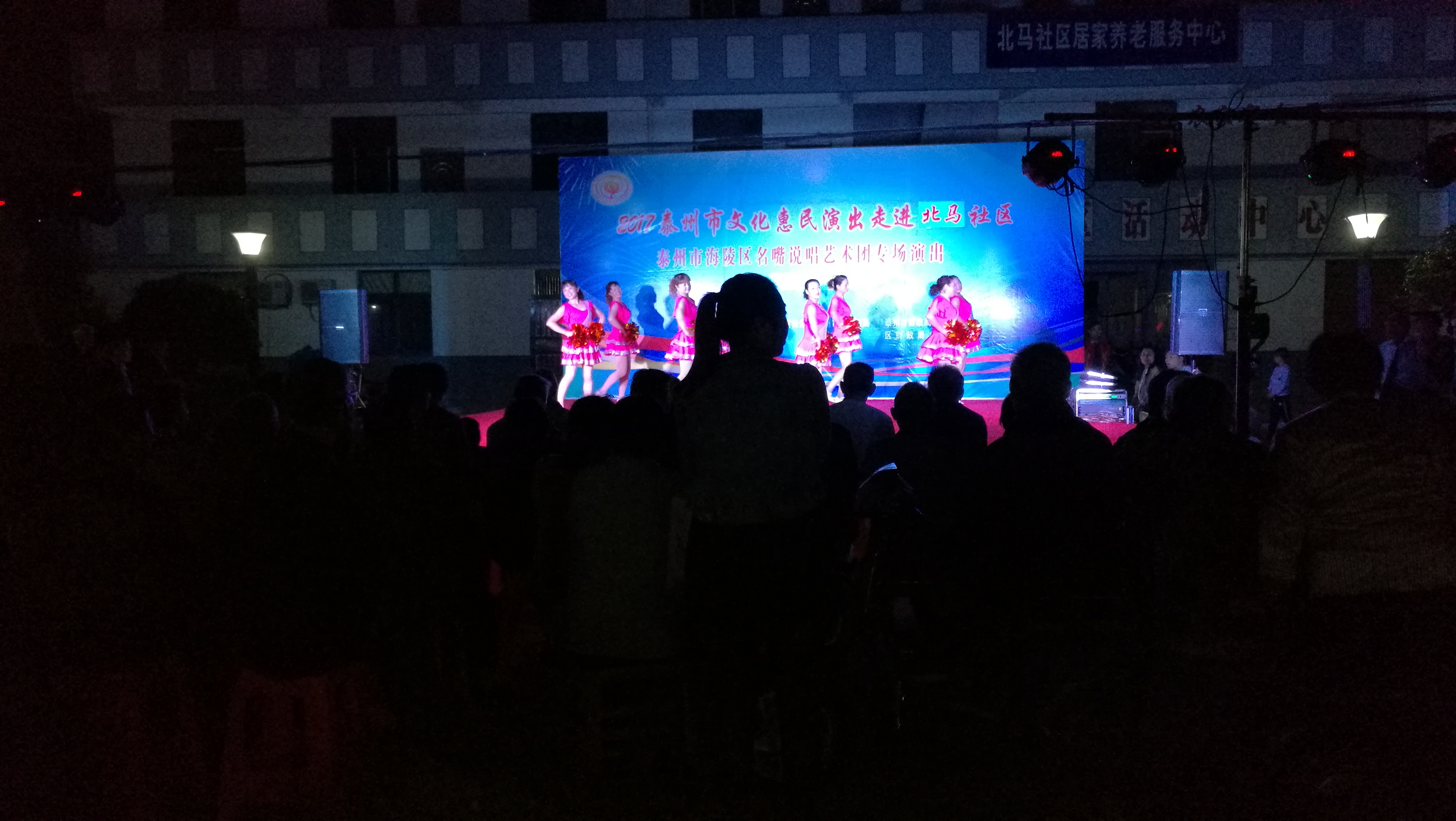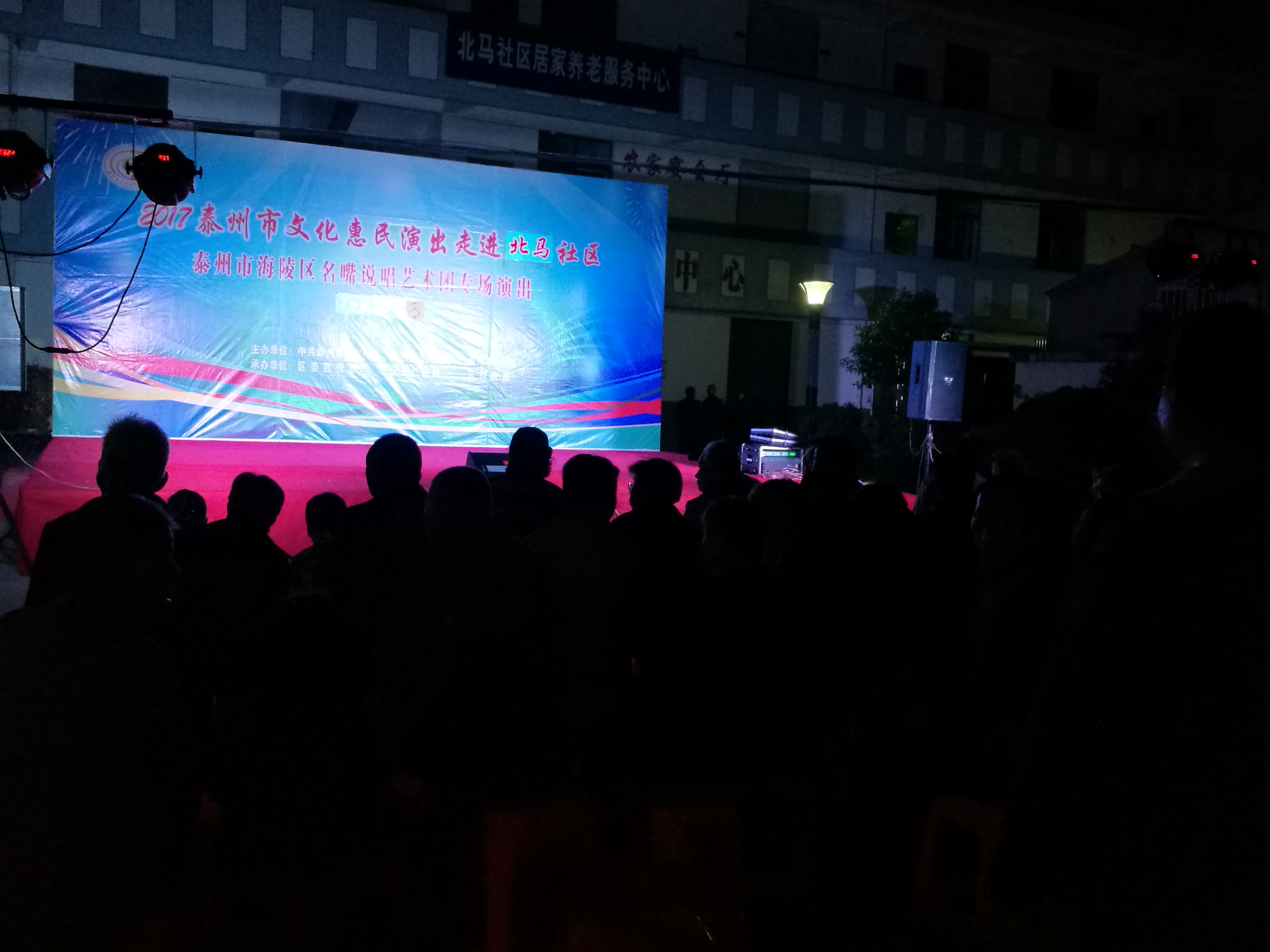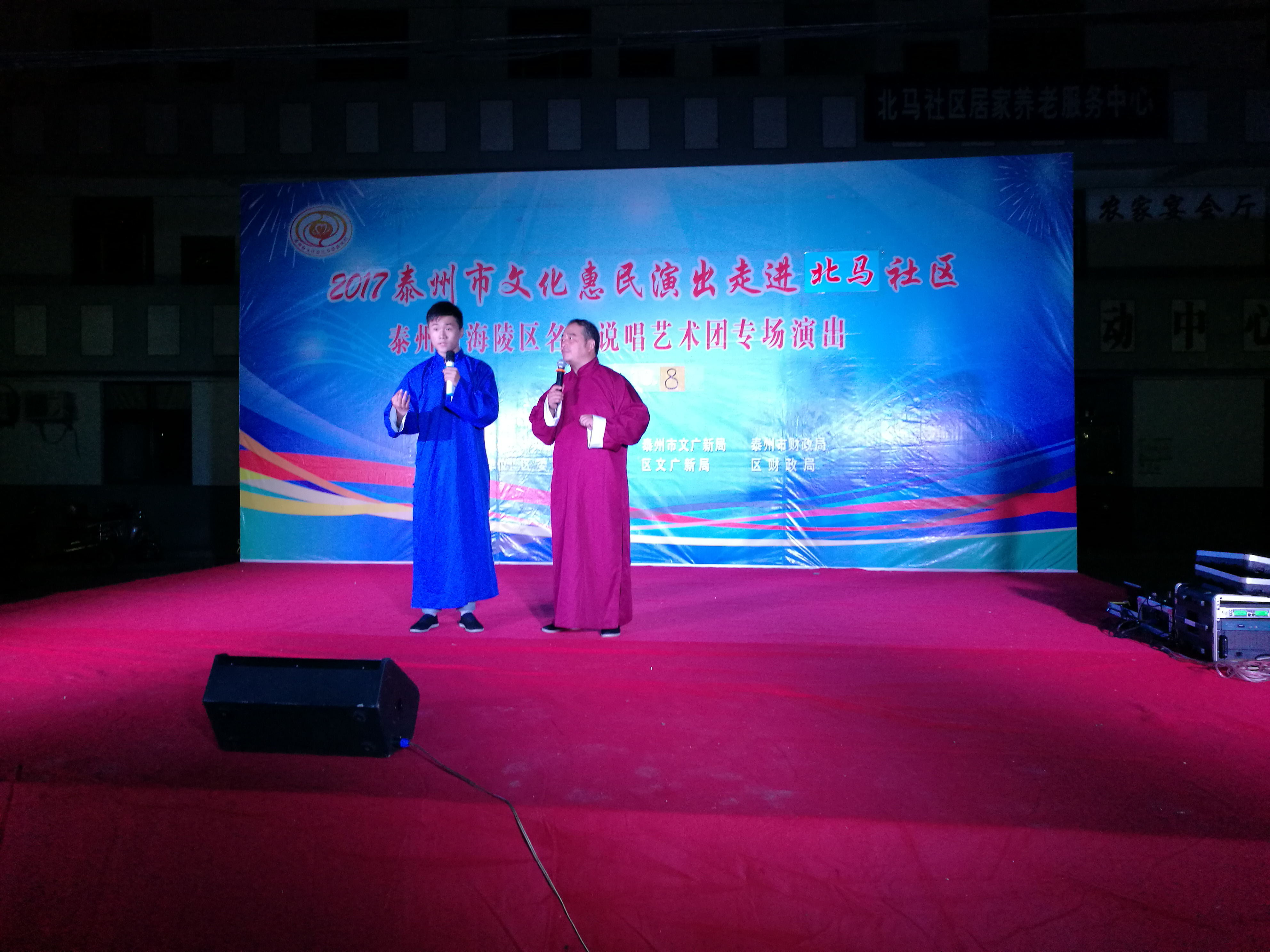 10.8号国庆长假最后一天,应北马社区之邀,海陵名嘴说唱艺术团来到了京泰路北马社区举行惠民演出,定好晚上19:00单18:00就来了好多社区居民,演出开始后,观众们阵阵掌声为精彩的节目喝彩叫好。