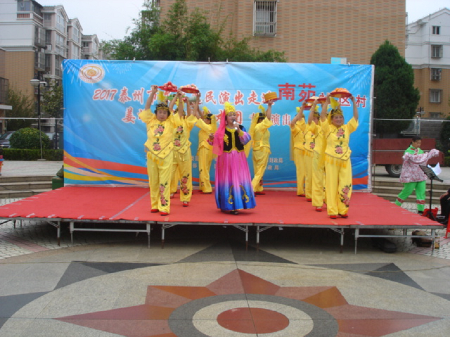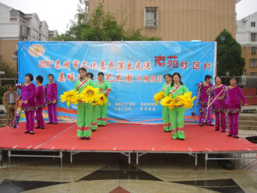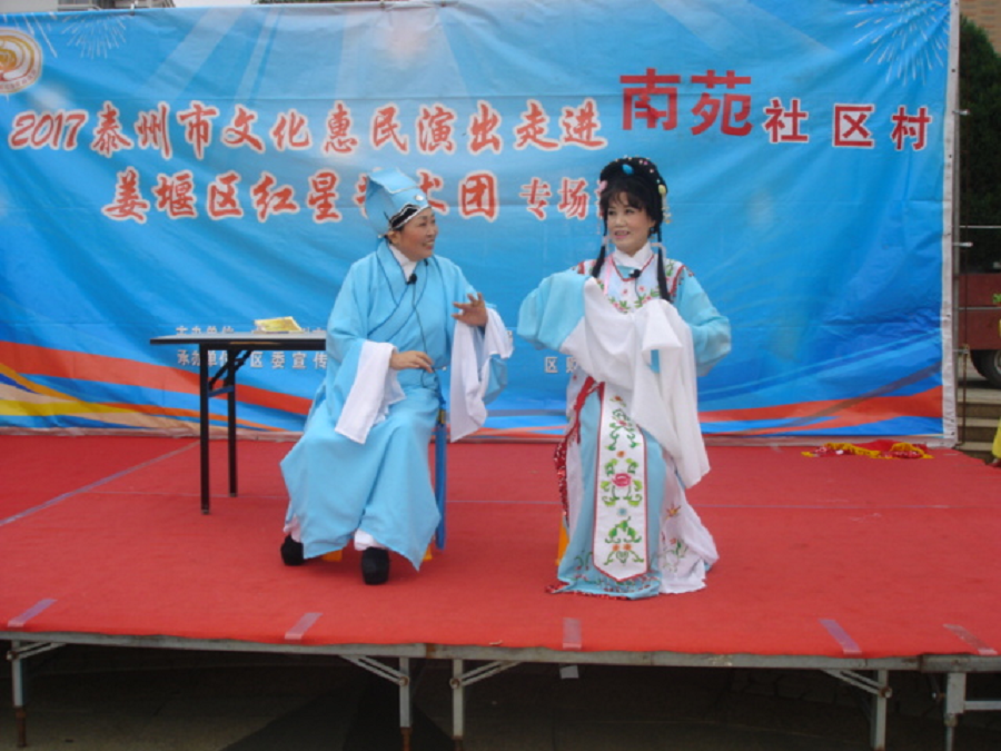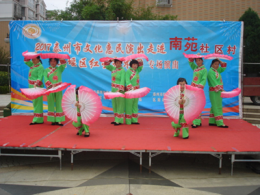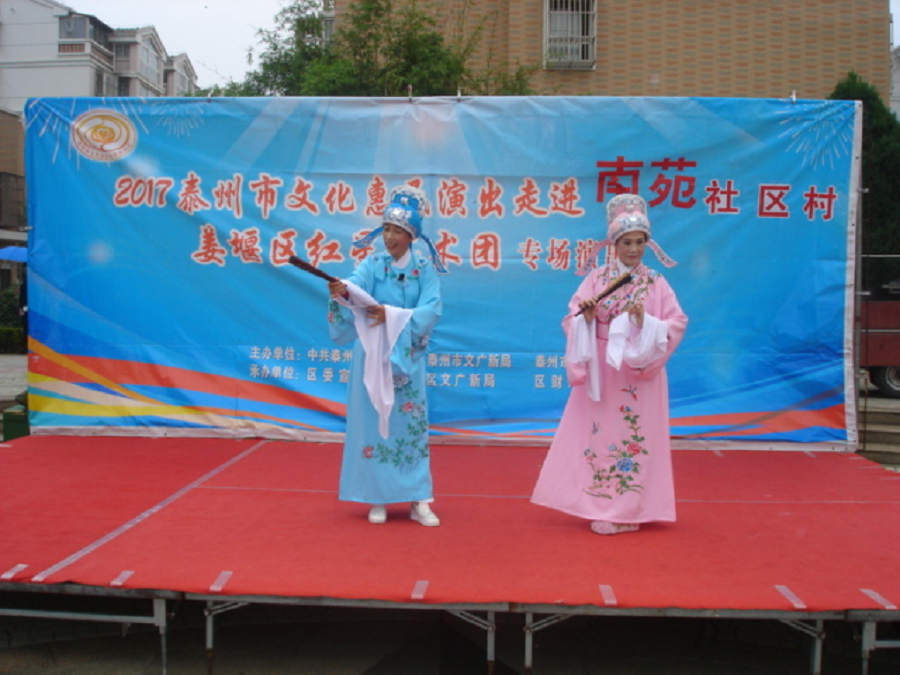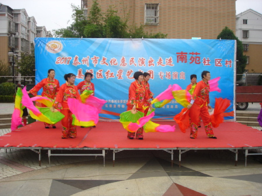 姜堰区红星艺术团应南苑社区的邀请进行文艺演出,那天下着小雨观众们都坚持观看,有的观众回家拿伞继续观看。台上演员们被感动了,演得更精彩了,一百多分钟的表演观众们掌声不断,深受好评!