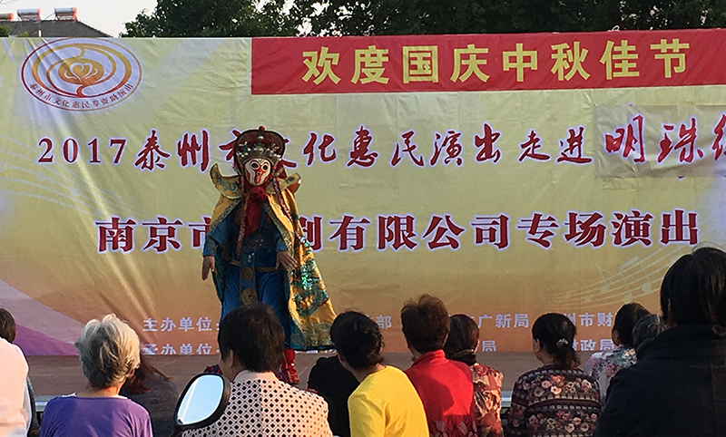 2017年10月8日下午三点我们南京市京剧团的演员如约来到泰州医药高新区明珠街道,为街道广大居民朋友们奉献一台集京剧、杂技、魔术、川剧变脸等丰富多彩的民族文化盛宴,为广大群众国庆、中秋节目平添无穷的乐趣。