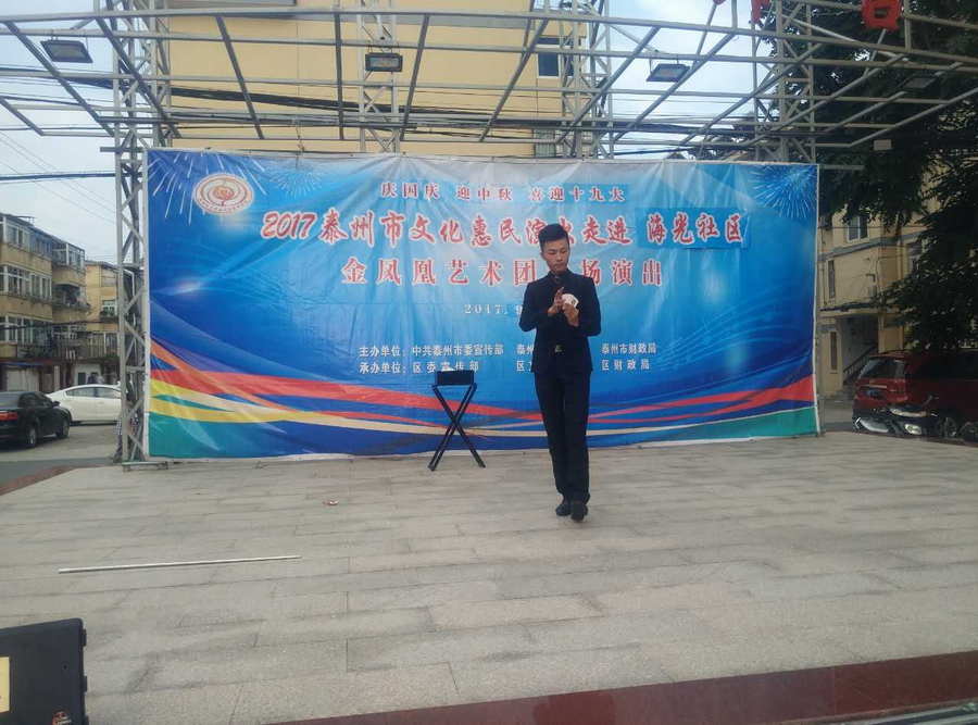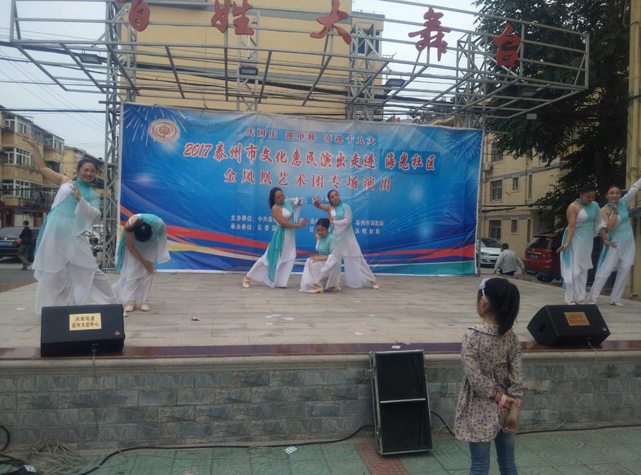 9月28日下午3:30,金凤凰艺术团走进海光社区,开展“迎国庆、庆中秋”双节活动,演出在海光社区民乐队的表演中开始,民乐队得知金凤凰艺术团来演出,也要求露一手,给此次演出增添了精彩一幕,演出在一片叫好声中完美结束。金凤凰艺术团全体演职员衷心感谢社区观众和乐队的配合!