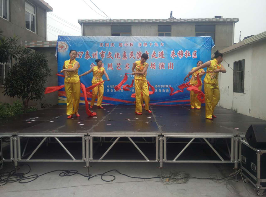 10月6日下午两点,金凤凰艺术团文化惠民“庆国庆中秋”演出走进医药高新区凤凰街道朱穆社区,演员们精心准备了丰富多彩的节目,歌舞、小品、说唱、魔术、二胡、戏曲等系列节目一一呈现给社区观众,给“双节”带了热烈的节日气氛,给社区观众带来了饕餮的精神大餐。