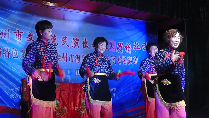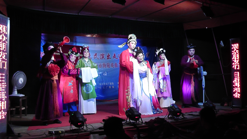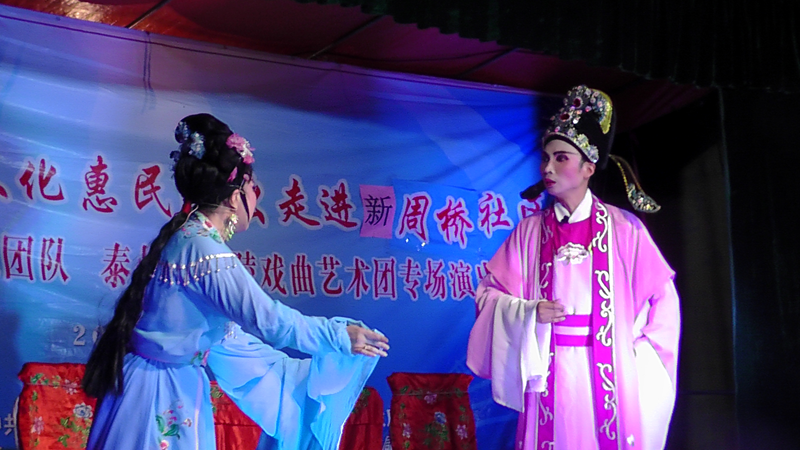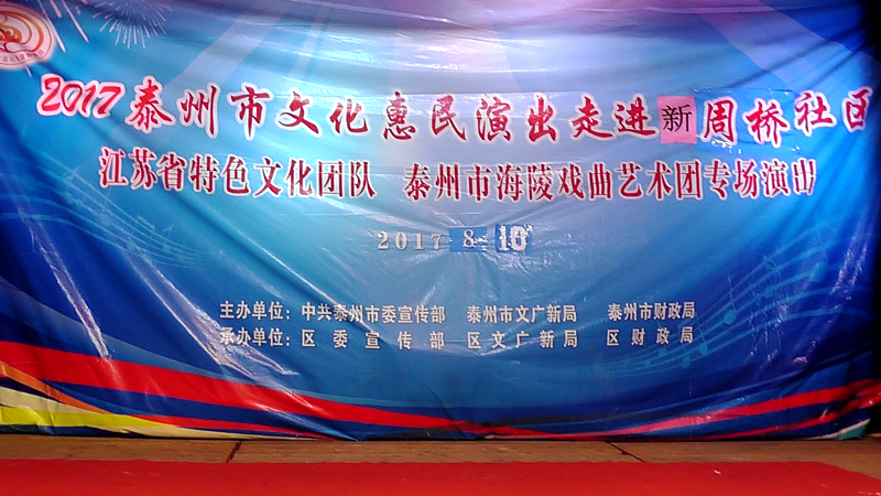 泰州市海陵戏曲艺术团于2017年8月10日晚7点30分在海陵区京泰路街道新周桥社区文化广场演出大型优秀传统扬剧——《逃婚的新娘》。我团参演人员25人,由于新周桥社区积极宣传,前来看戏的群众近300人,人民需要文化,文化需要人民,演出现场气氛热烈,观众掌声不断,演出圆满成功。这更加激起我们为老百姓排好戏、演好戏、唱好戏。把泰州市文化惠民演出活动锦上添花,更上一层楼。