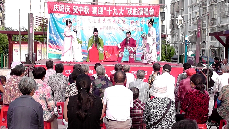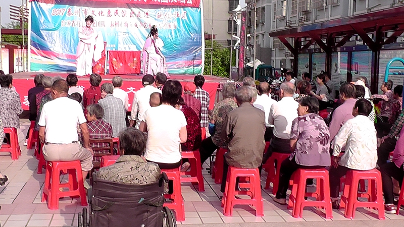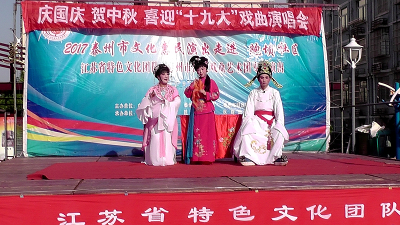泰州市海陵戏曲艺术团于2017年9月25日下午14点30分在海陵区城东街道鲍坝社区文化广场演出大型优秀传统扬剧——《碧玉簪》。我团参演人员25人,由于鲍坝社区积极宣传,前来看戏的群众近200人,人民需要文化,文化需要人民,演出现场气氛热烈,观众掌声不断,演出圆满成功。这更加激起我们为老百姓排好戏、演好戏、唱好戏。把泰州市文化惠民演出活动锦上添花,更上一层楼。