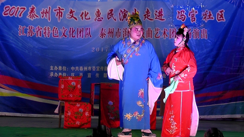 泰州市海陵戏曲艺术团于2017年9月30日晚19点30分在海陵区罡杨镇冯官社区演出大型优秀传统扬剧——《夜明珠》。我团参演人员25人,由于冯官社区积极宣传,前来看戏的群众近500人,人民需要文化,文化需要人民,演出现场气氛热烈,观众掌声不断,演出圆满成功。这更加激起我们为老百姓排好戏、演好戏、唱好戏。把泰州市文化惠民演出活动锦上添花,更上一层楼。