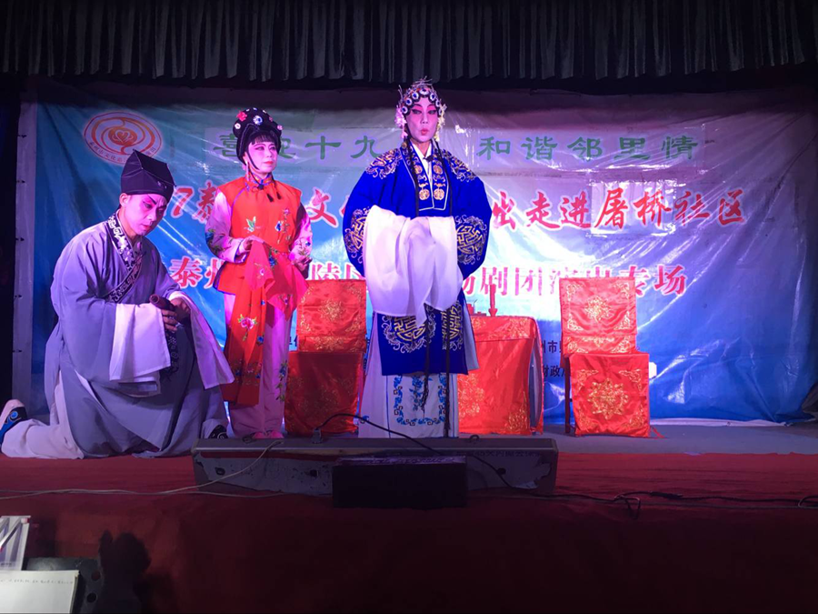 2017泰州市文化惠民演出走进医药高新区寺巷街道屠桥社区,海陵区小鹰扬剧团专场演出,于9月15日晚上在泰州医药高新区寺巷街道屠桥社区幼儿园门口广场成功举办。本次演出剧目为传统扬剧《珍珠塔》,剧中姑妈妈的势利,嫌贫爱富的举动受到观众的谴责,剧情大义就是告诉世人,人穷不能穷一辈子,三十年河东转河西,姑妈嫌她侄儿方卿穷,上门来投亲,都不相认,并且说了好多刺激他的话,说他没有高官做,方卿后来励志苦读三年书,考举了头名状元,唱道情羞辱他的姑妈,让她改掉势利的坏习惯。演员们精彩的演出,博得了观众的阵阵掌声。演出很成功!感谢社区领导提供全方位的服务!