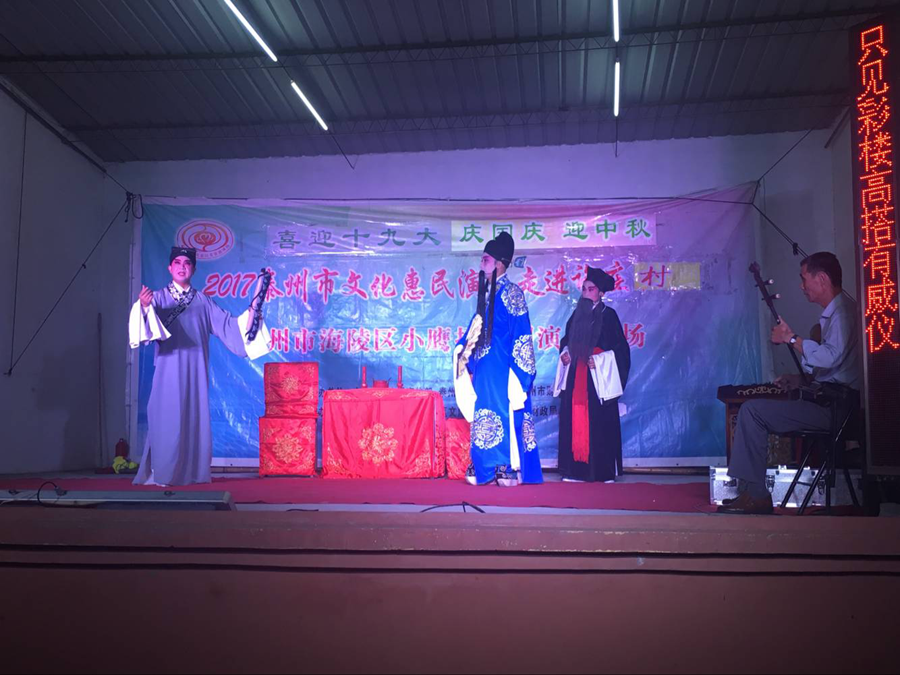 2017泰州市文化惠民演出走进姜堰区俞垛镇许庄村,海陵区小鹰扬剧团专场演出,2017年9月22日晚上在泰州市姜堰区俞垛镇许庄村百姓大舞台成功举办。本次演出剧目为传统扬剧《珍珠塔》,剧中姑妈妈的势利,嫌贫爱富的举动受到观众的谴责,剧情大义就是告诉世人,人穷不能穷一辈子,三十年河东转河西,姑妈嫌她侄儿方卿穷,上门来投亲,都不相认,并且说了好多刺激他的话,说他没有高官做,方卿后来励志苦读三年书,考举了头名状元,唱道情羞辱他的姑妈,让她改掉势利的坏习惯。演员们精彩的演出,博得了观众的阵阵掌声。演出很成功!感谢社区领导提供全方位的服务!