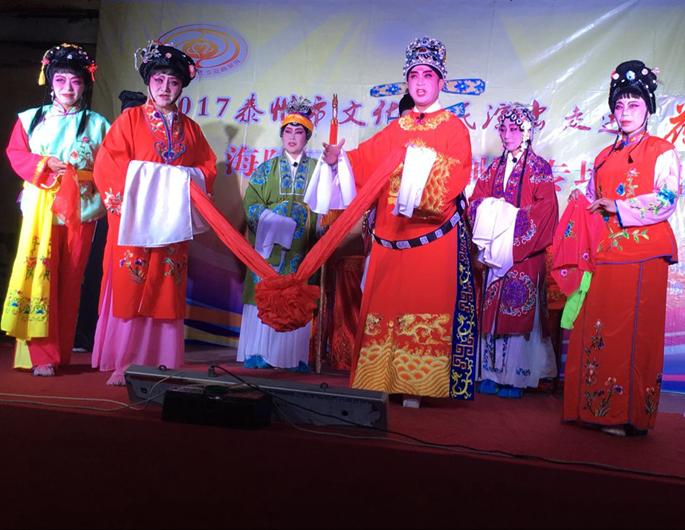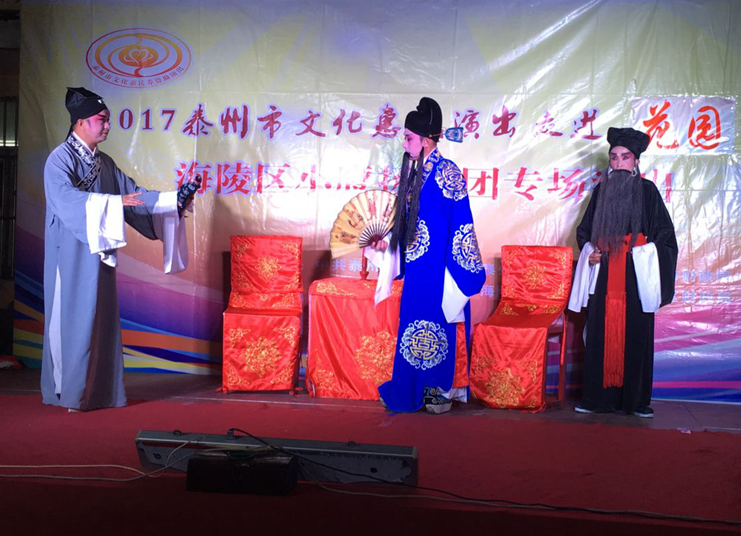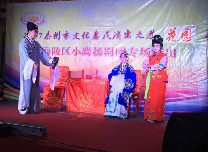 泰州市2017文化惠民演出走进海陵区城北街道花园社区,海陵区小鹰扬剧团专场演出,2017年9月26日晚上在泰州市海陵区城北街道花园社区广场成功举办。本次演出剧目为传统扬剧《珍珠塔》,剧中姑妈妈的势利,嫌贫爱富的举动受到观众的谴责,剧情大义就是告诉世人,人穷不能穷一辈子,三十年河东转河西,姑妈嫌她侄儿方卿穷,上门来投亲,都不相认,并且说了好多刺激他的话,说他没有高官做,方卿后来励志苦读三年书,考举了头名状元,唱道情羞辱他的姑妈,让她改掉势利的坏习惯。演员们精彩的演出,博得了观众的阵阵掌声。演出很成功!感谢社区领导提供全方位的服务!
