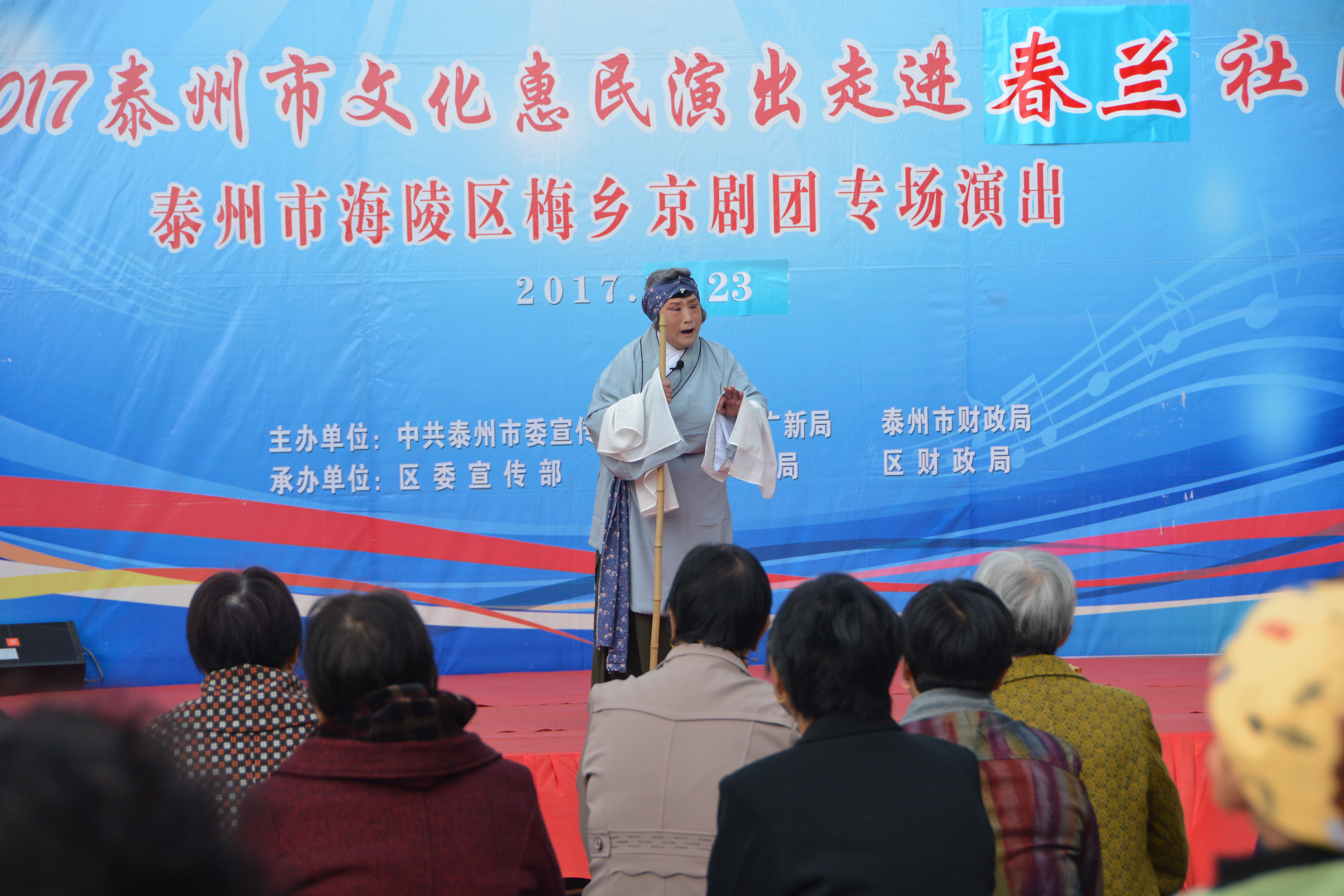 2017.10.23号,泰州海陵区梅乡京剧团惠民演出走进了春兰社区,给社区群众带来了一台国粹经典。受到了老百姓的喜爱。