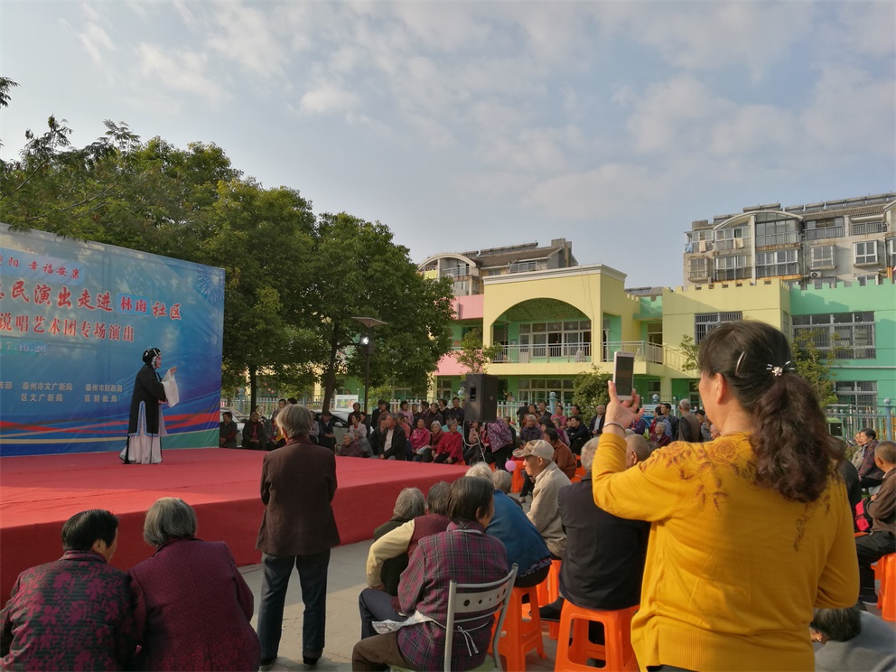 2017.10.20日下午风和日丽,名嘴艺术团来到京泰路林南社区,为社区老百姓送来的文化惠民的节目。