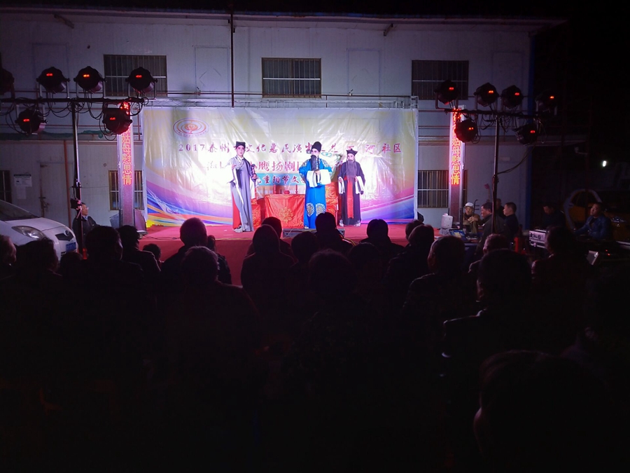 2017泰州市文化惠民演出走进凤凰街道双河社区小鹰扬剧团专场演出,于10月28日晚上在双河社区成功举办。本次演出剧目为传统扬剧《珍珠塔》,剧中姑妈妈的势利,嫌贫爱富的举动受到观众的谴责,剧情大义就是告诉世人,人穷不能穷一辈子,三十年河东转河西,姑妈嫌她侄儿方卿穷,上门来投亲,都不相认,并且说了好多刺激他的话,说他没有高官做,方卿后来励志苦读三年书,考举了头名状元,唱道情羞辱他的姑妈,让她改掉势利的坏习惯。演员们精彩的演出,博得了观众的阵阵掌声。最后又应观众要求加演了僧尼下山,演出很成功!感谢社区领导提供全方位的服务!