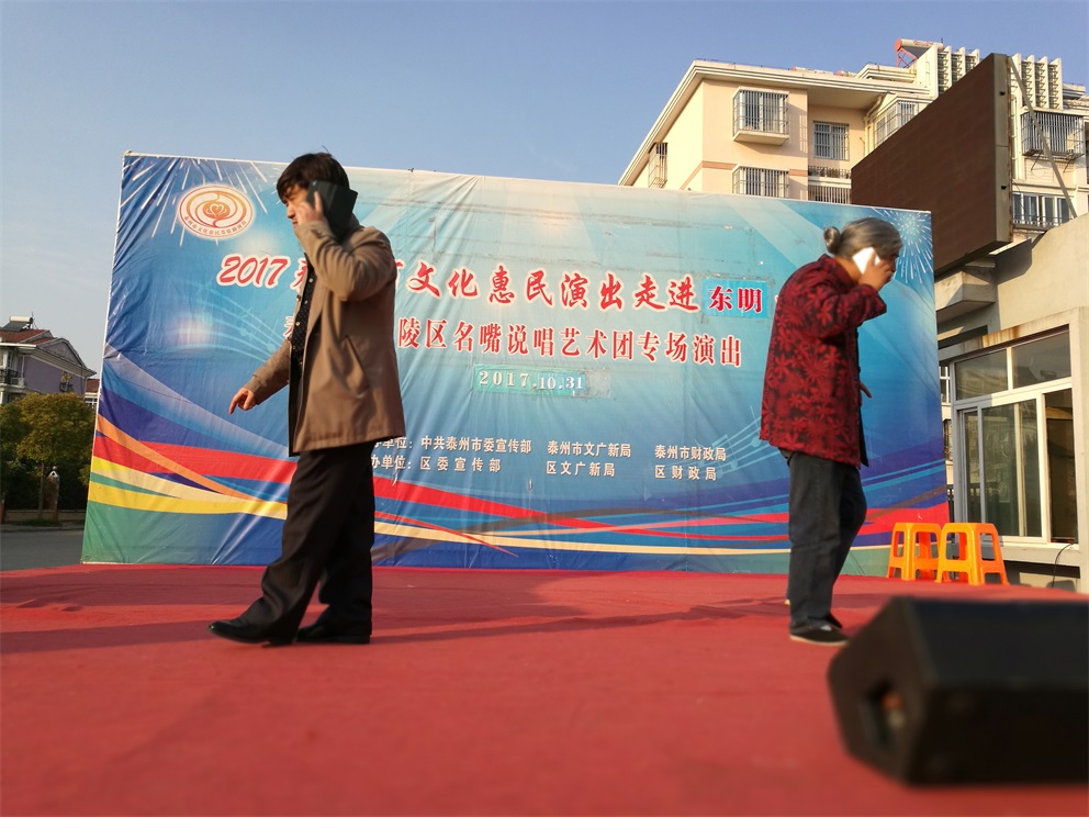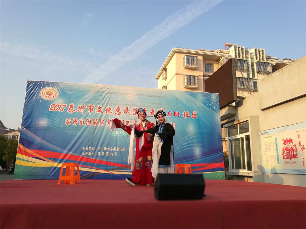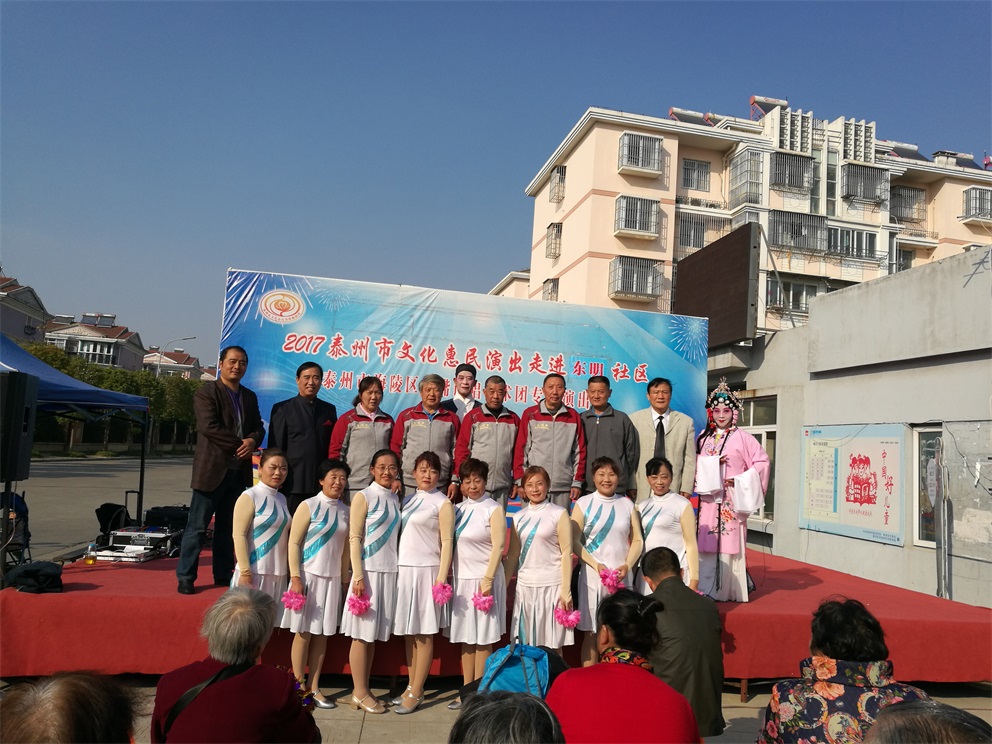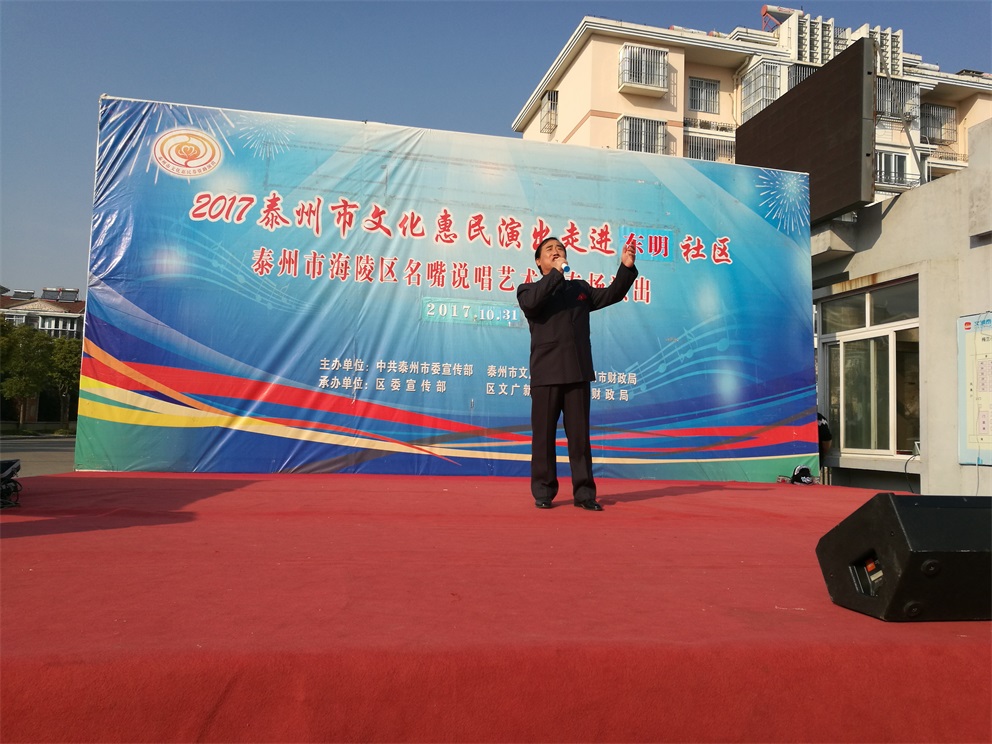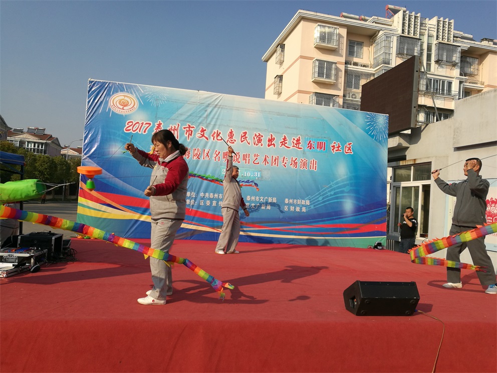 2017年10月31日下午,风和日丽,海陵区名嘴说唱艺术团给明珠街道东明社区老百姓带来了一场文化惠民