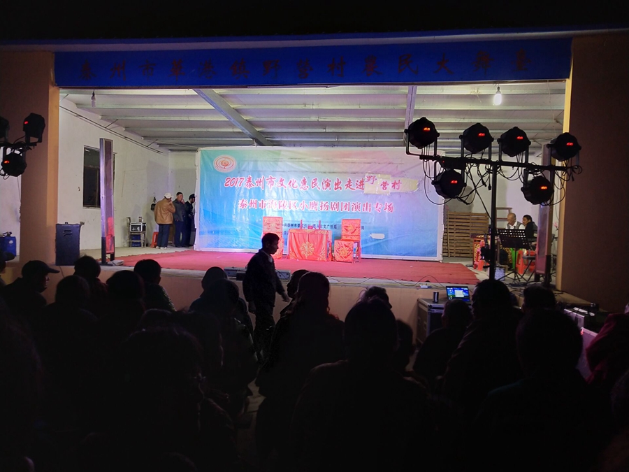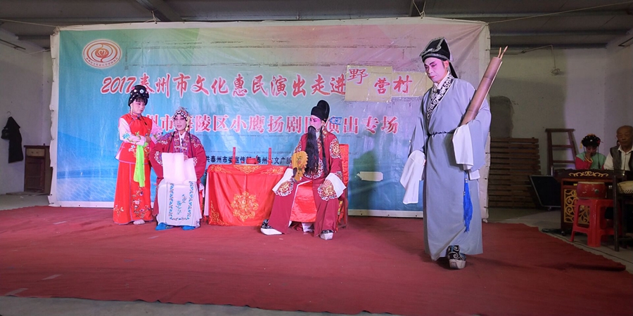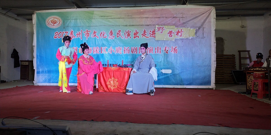 2017泰州市文化惠民演出走进野营社区,海陵区小鹰扬剧团专场演出,2017年10月13日在姜堰区华港镇野营村成功举办。本次演出剧目为传统扬剧《珍珠塔》,剧中姑妈妈的势利,嫌贫爱富的举动受到观众的谴责,剧情大义就是告诉世人,人穷不能穷一辈子,三十年河东转河西,姑妈嫌她侄儿方卿穷,上门来投亲,都不相认,并且说了好多刺激他的话,说他没有高官做,方卿后来励志苦读三年书,考举了头名状元,唱道情羞辱他的姑妈,让她改掉势利的坏习惯。剧中跌血一折将演出推向了高潮,演员们精彩的演出,博得了观众的阵阵掌声。演出很成功!感谢村领导提供全方位的服务!