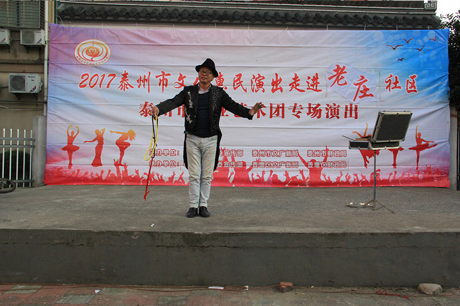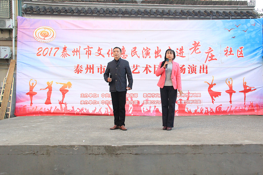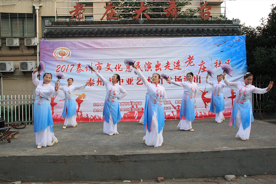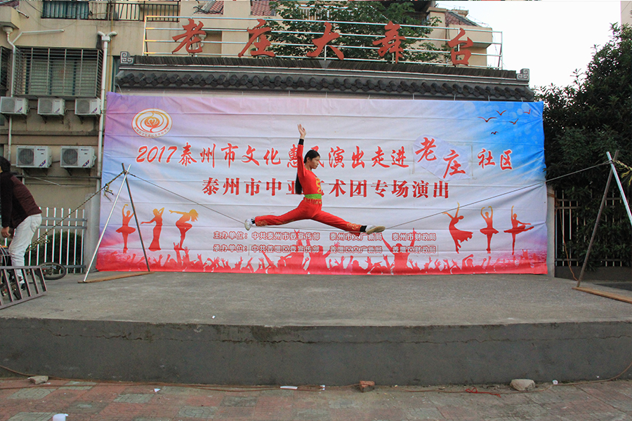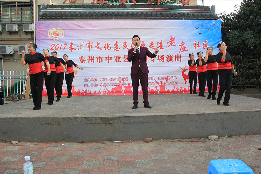 2017泰州市文化惠民演出走进姜堰区老庄社区,中亚艺术团专场演出,2017年10月24日下午在泰州市姜堰区老庄成功举办。本场演出剧目为大型舞蹈、搞笑小品、高难度杂技,好听的歌伴舞等演员们精彩的表演唱博得了观众的阵阵掌声。演出很成功!最后获得广大民众的一致好评,也感谢社区领导提供全方位的服务!