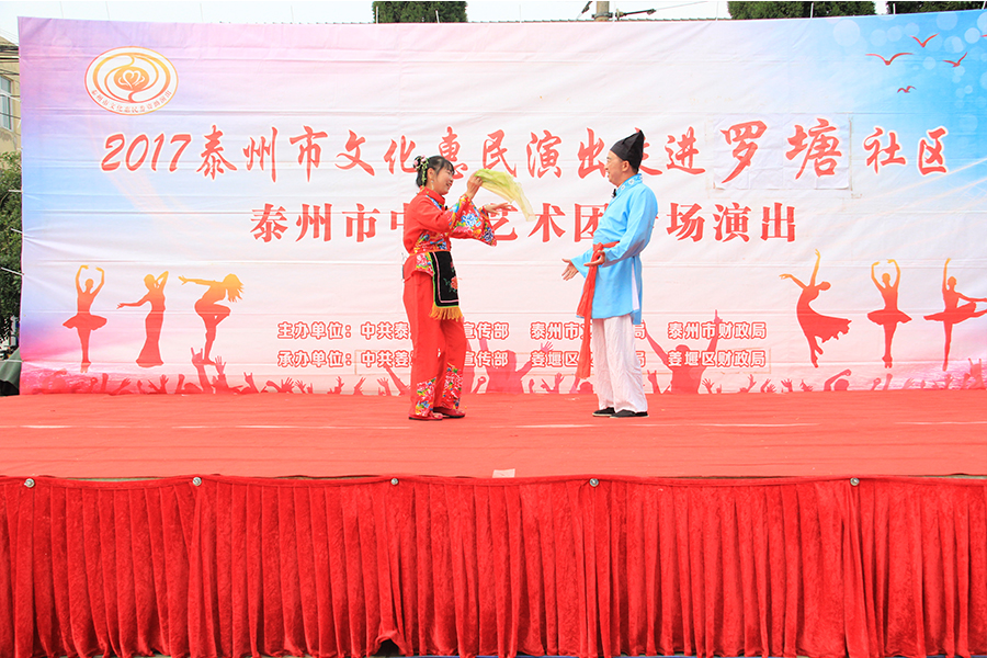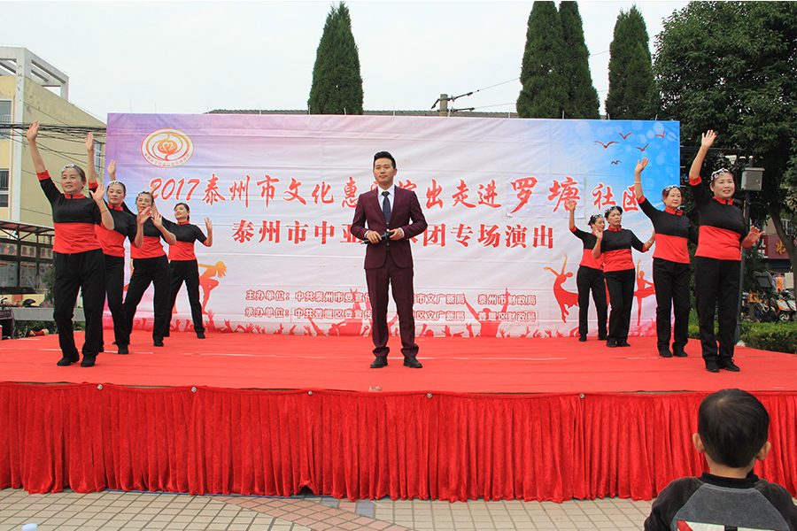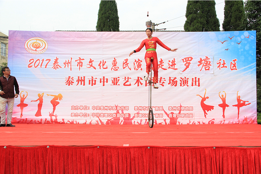 2017泰州市文化惠民演出走进罗塘社区,泰州中亚艺术团专场演出,于10月26日下午在泰州市姜堰区罗塘社区成功举办。演员们精彩的演出,博得了观众的阵阵掌声。演出节目有戏剧、小品、杂技、魔术、舞蹈、歌伴舞、等众多精彩节目。最后感谢社区领导提供全方位的服务!