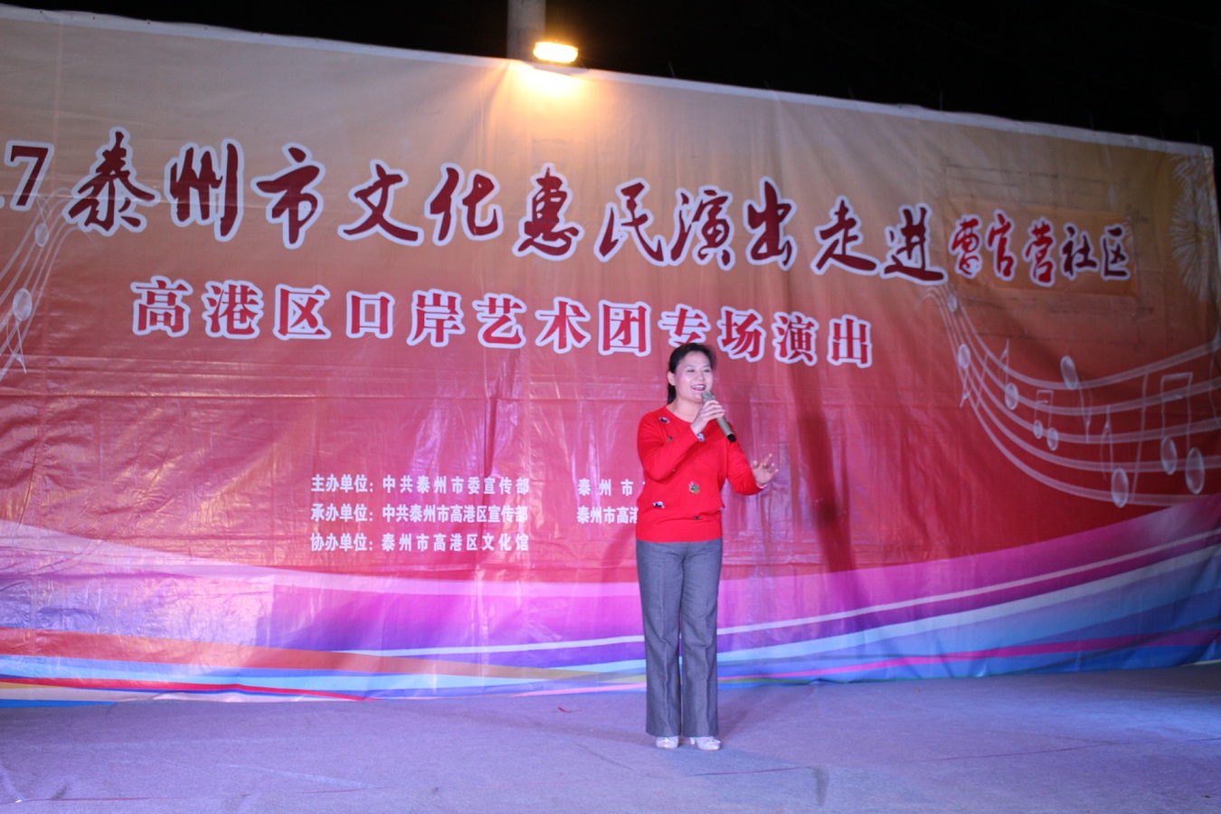 为深入推进文化惠民工程,丰富群众文化生活,繁荣社会主义文化,在曹官营社区的组织下,11月4日,口岸艺术团满载着一台丰盛的综艺文艺节目,来到了我们曹官营社区健身广场,给这个硕果累累的秋天画上了完美的句号。