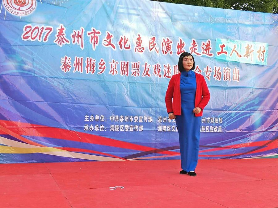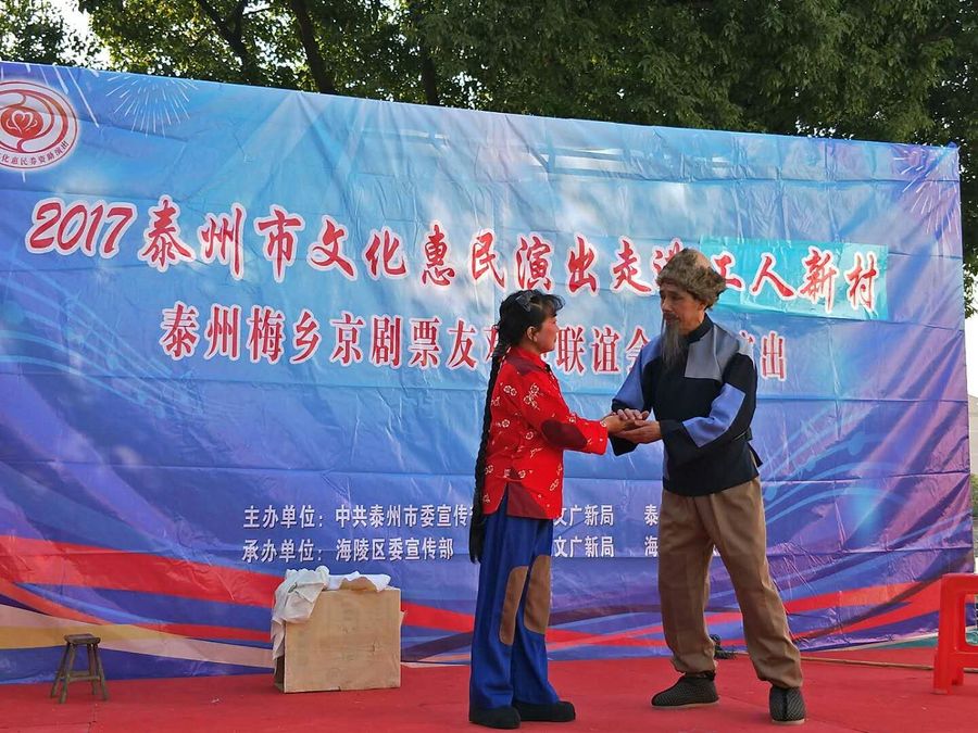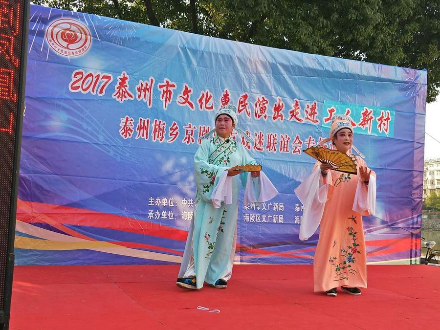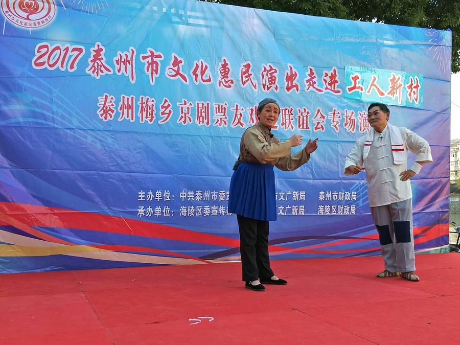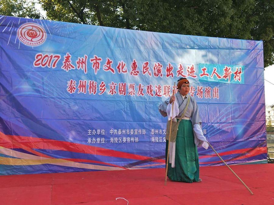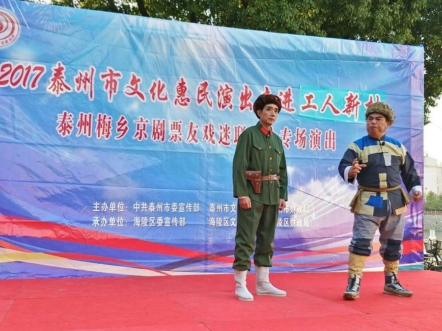 2017年11月5日下午,梅乡京剧票友联谊会赴城北街道工人社区,为居民们带去了一台京剧惠民演唱会。联谊会此次演出有现代京剧《智取威虎山》、《江姐》、《红灯记》、《海港》、《龙江颂》、《沙家浜》、《白毛女》等经典唱段,有传统京剧《诗文会》、《遇皇后》、《霸王别姬》、《锁麟囊》等传统名段,应广大观众朋友的要求,我们还短时间排练了一段扬淮对唱的《十八相送》,并成功参加了演出。整场演出受到广大市民朋友的热烈欢迎,台下观众的掌声、叫好声此起彼落,热心的观众相约我们再次相见,为他们送去更多更好的京剧名段。