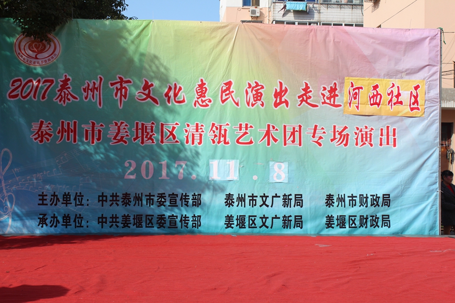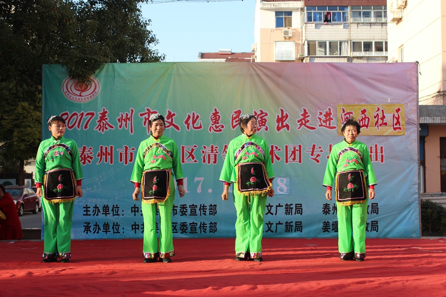 11.8日,姜堰区清瓴艺术团恵民演出走进罗塘街道河西社区,演出在舞蹈<<走进新农村>>中拉开帷幕,情景剧<<婆婆也是妈>>让台下旳观众深受感动,小品<<吵嘴>>赢得了广大观众的阵阵掌声和喝彩声,整场演出持续了近两个小时,受到了河西社区居民的一致好评。