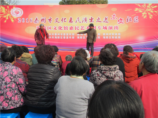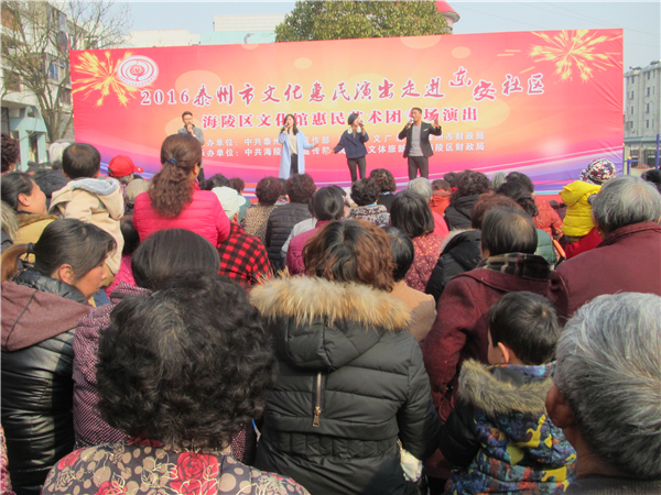 3月3日下午,东安社区邀请海陵区文化馆惠民艺术团来社区开展“庆三八”惠民演出活动,来自海陵区文化馆惠民艺术团的12支演出队伍,为社区的居民们带来了一场精彩纷呈的文化盛宴。