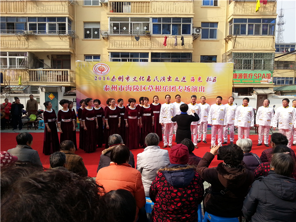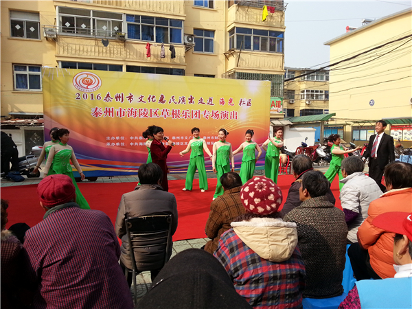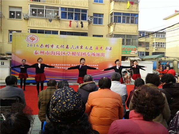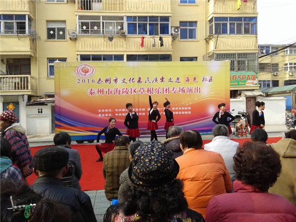 为迎接三八妇女节,3月3日下午,由中共泰州市委宣传部、泰州文广新局、泰州市财政局主办,中共海陵区委宣传部、海陵区文广新局、海陵区财政局承办,2016年泰州市文化惠民草根乐团专场演出首次走进海光社区,给社区居民带来一场文化盛宴。