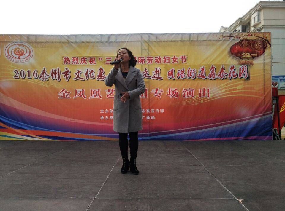 金凤凰艺术团文化惠民走进明珠街道鑫泰花园社区“三八”妇女节专场文艺演出,取得圆满成功,受到领导和观众的一致好评,我们将更加认真地排练出好节目,回馈给广大观众。