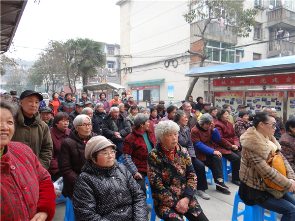 当天下午,尽管天公不作美,但仍然挡不住演员与观众们的热情。活动尚未开始,居民们已从四面八方汇聚到林机居委会门前,顿时热闹非凡、其乐融融,特别是一些老年朋友带着小孩抢先坐在前排,静静地等待着演出的开始。此次演出内容丰富、贴近百姓生活,以锡剧、扬剧、淮剧为主,共演出《沙家浜》、《白蛇传》、《亲家母相会》、《牙痕记》、《梁祝》、《双下山》等7个节目。演员们精湛的演技赢得在场观众掌声不断,现场热情高涨、欢声笑语,处处洋溢着喜悦和谐的欢乐氛围。