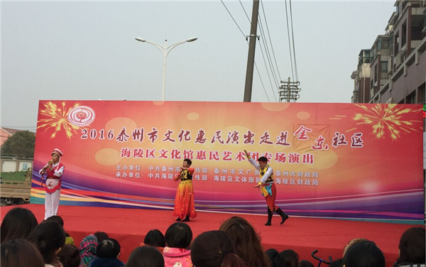 阳春三月,万物复苏,到处洋溢着浓浓的春意,为纪念第106个三八国际劳动妇女节,让全社区妇女过一个健康、快乐、和谐,难忘而有意义的节日。3月7日下午,金东社区邀请海陵区文化馆惠民艺术团来社区开展“迎三八”惠民文化演出活动。
